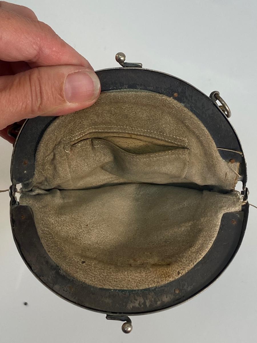 Vintage Antique Leather & Silver Glass Seed Bead Beaded Flapper Coin Purse with Belt Hook