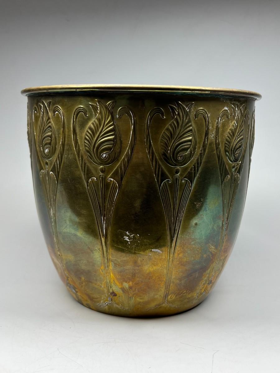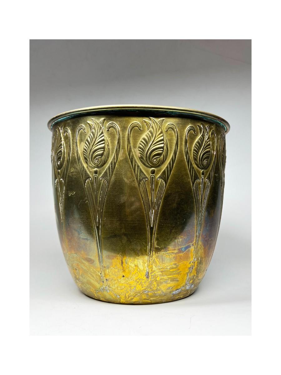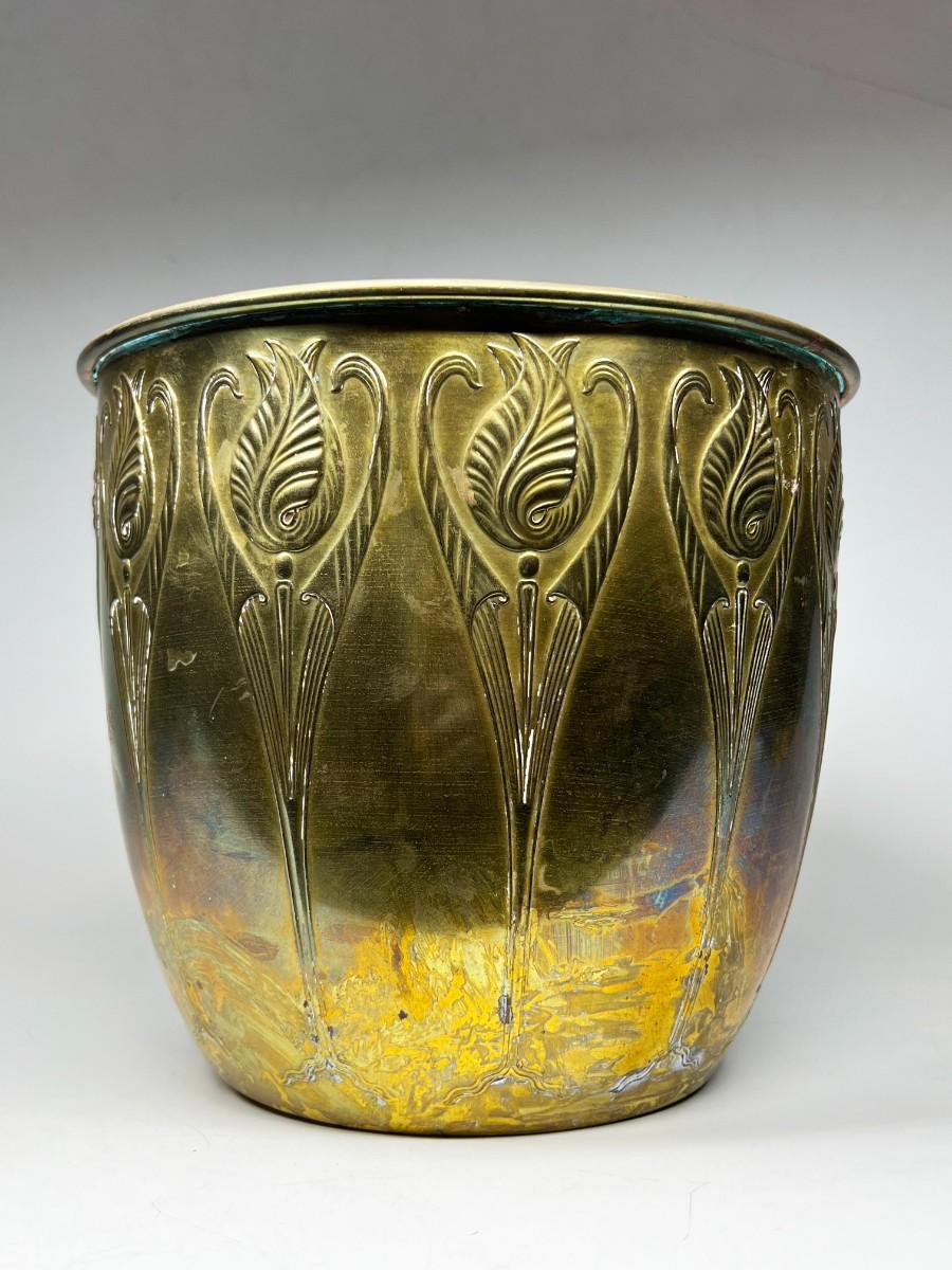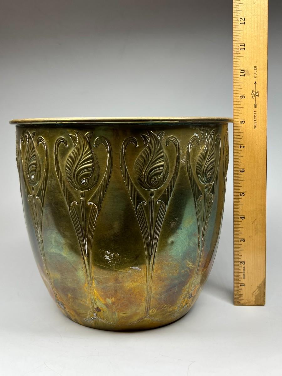 Vintage Antique Made in Holland Art Nouveau Deco Stamped Brass Planter Pot