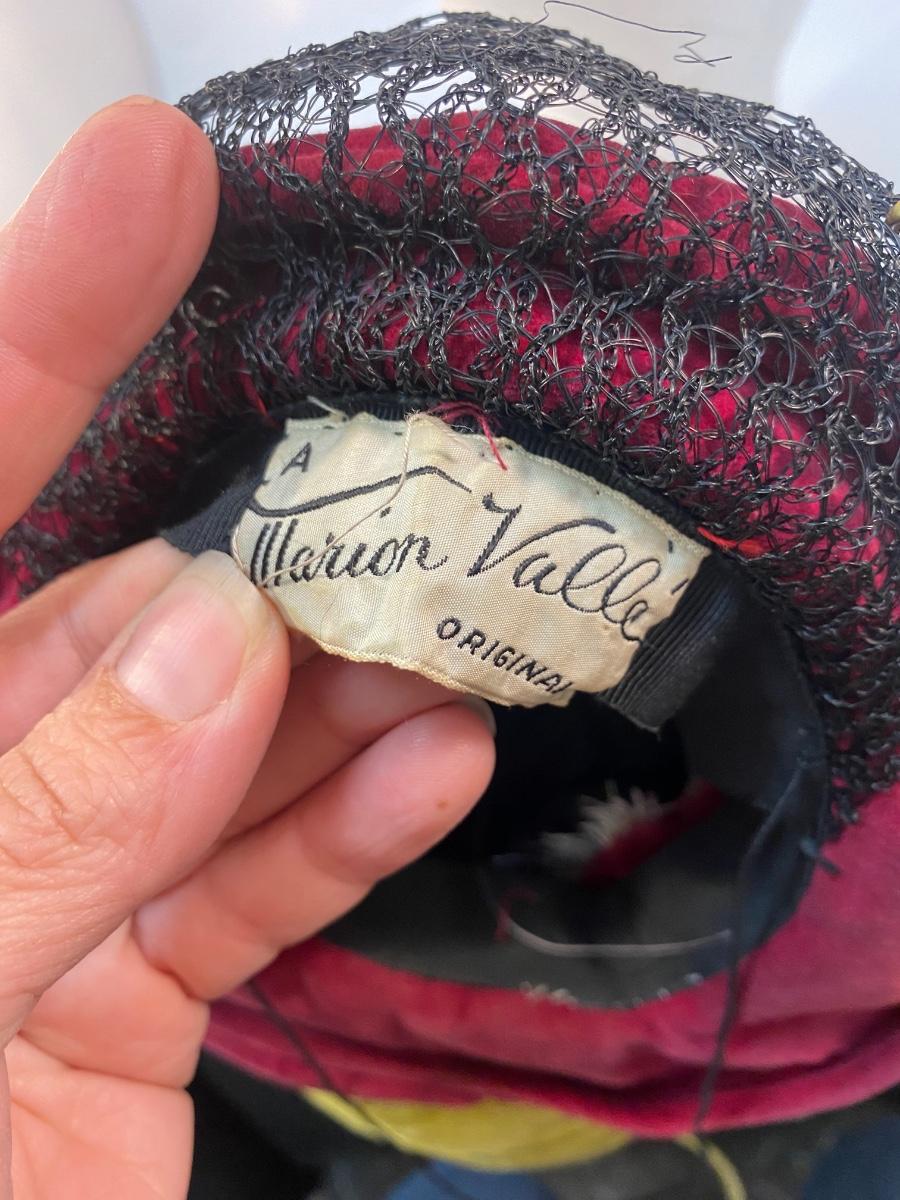 Vintage Antique Marion Valle Original Burgandy Feathered Slouched Top Hat Fedora Fascinator