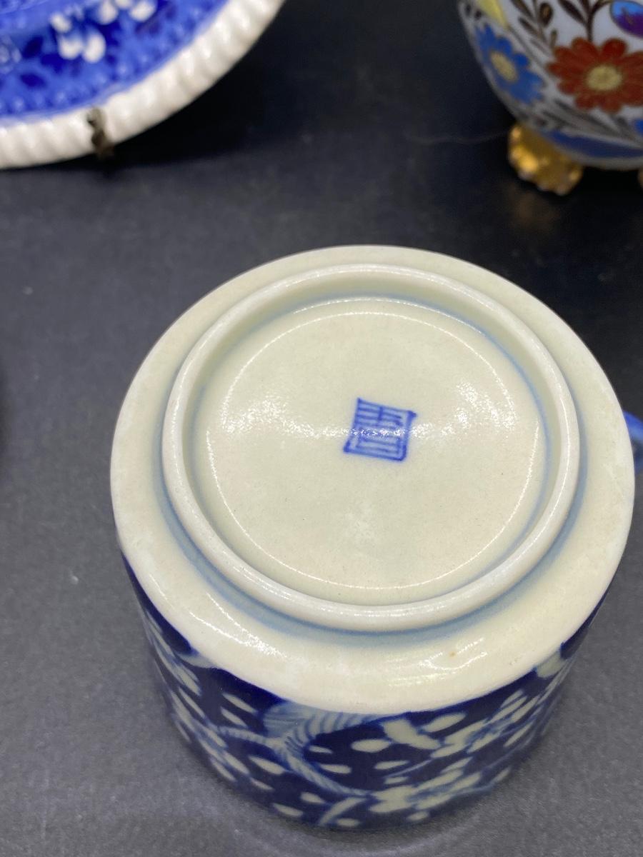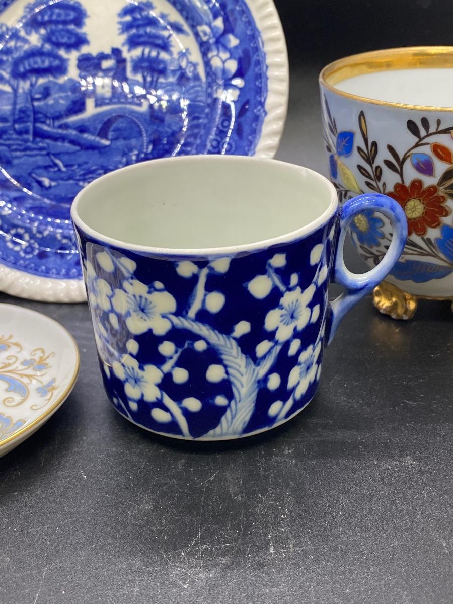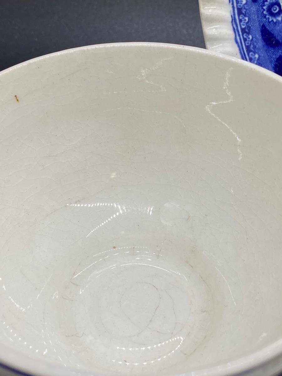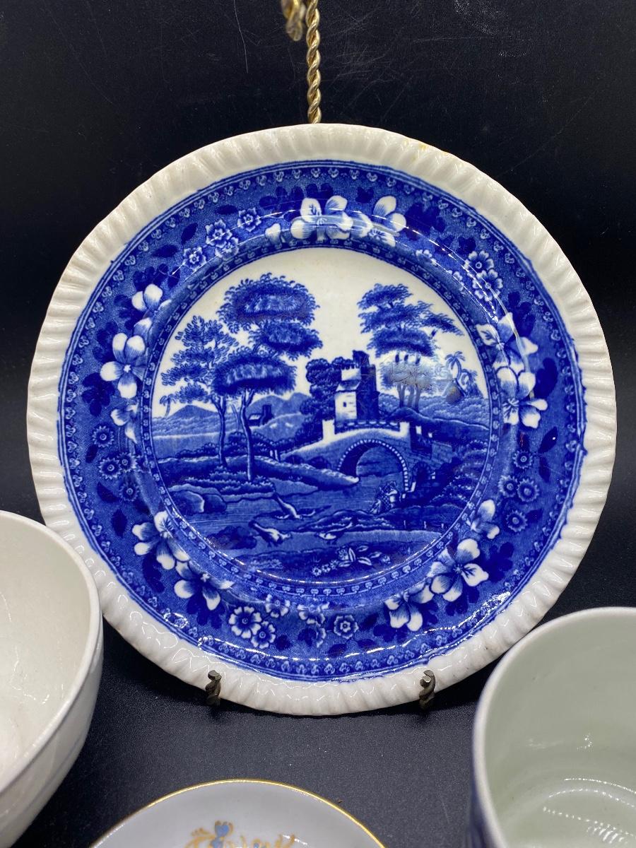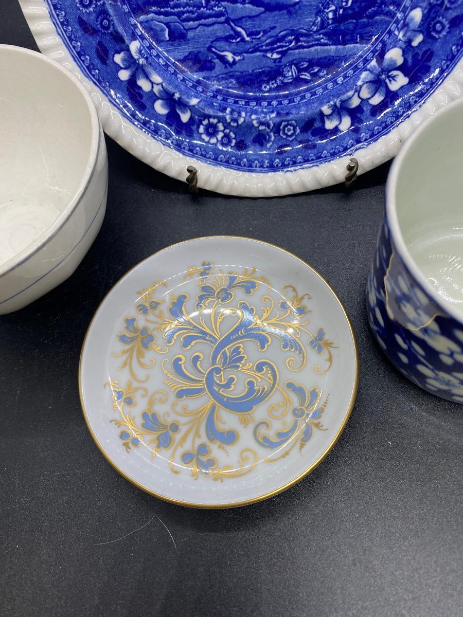 Mixed lot of antique and vintage china dishware in various shades of blue. All pieces are in good condition, no chips but may have crazing.
