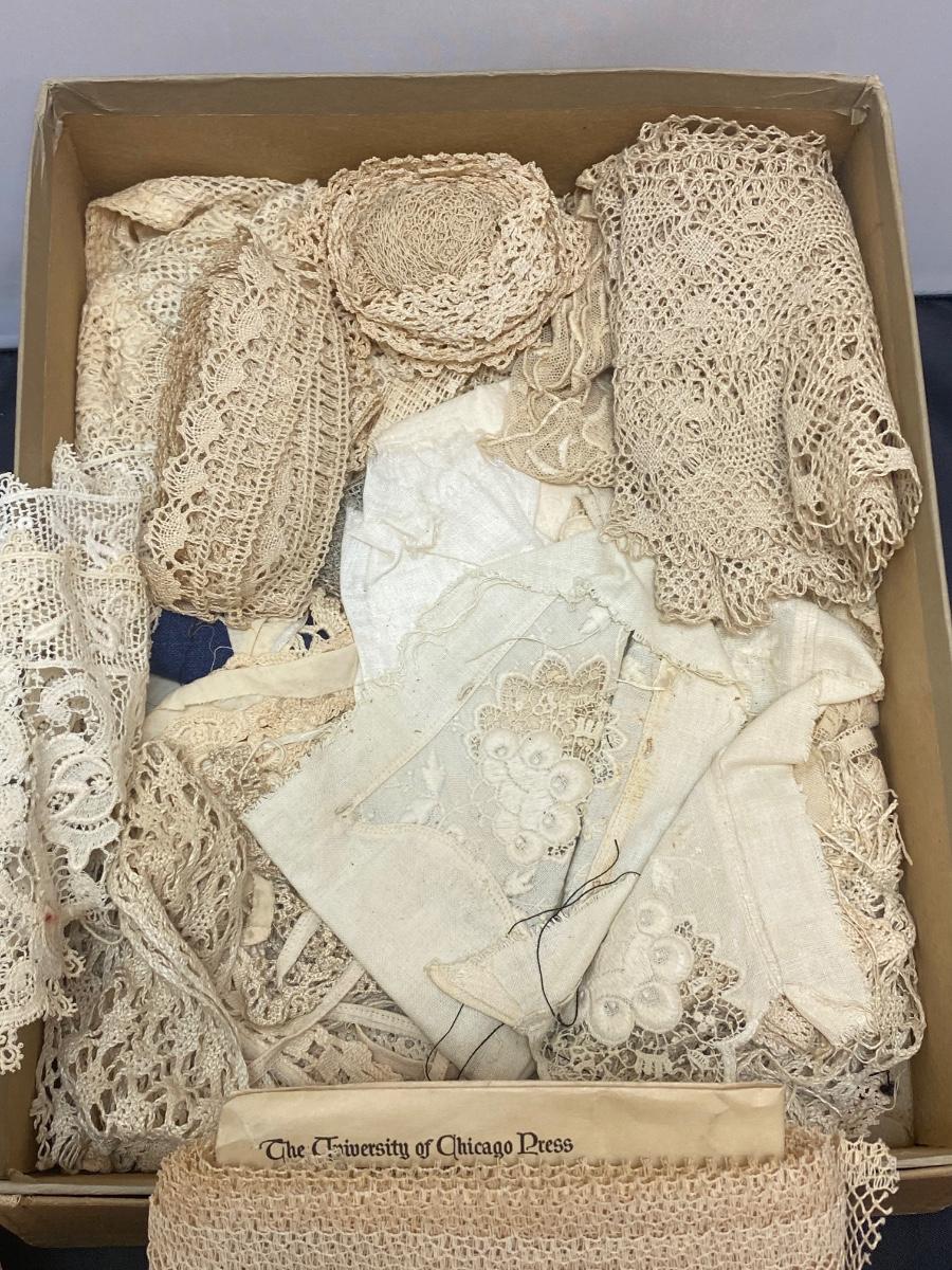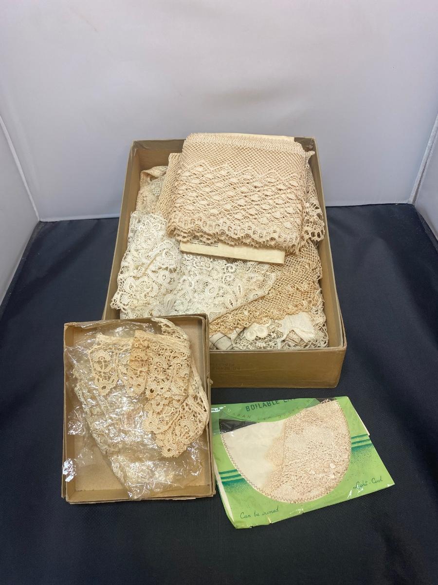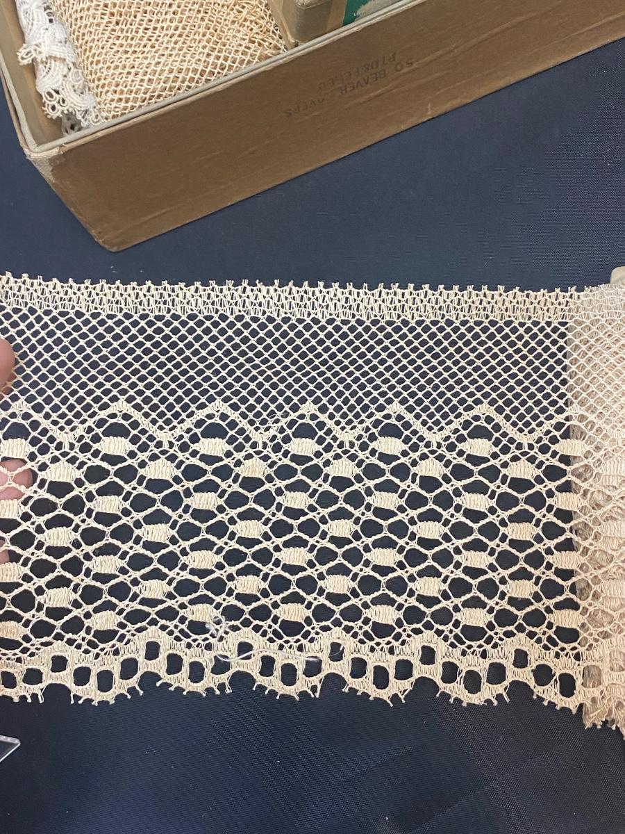 Mixed style lot of vintage and antique lace. Crochet style lace pieces. Many different patterns. Various lengths.
