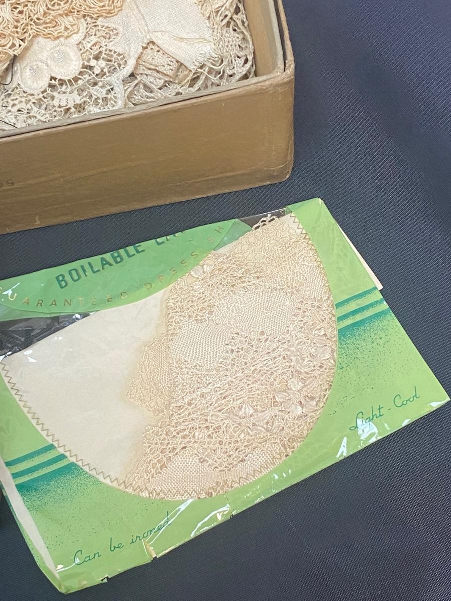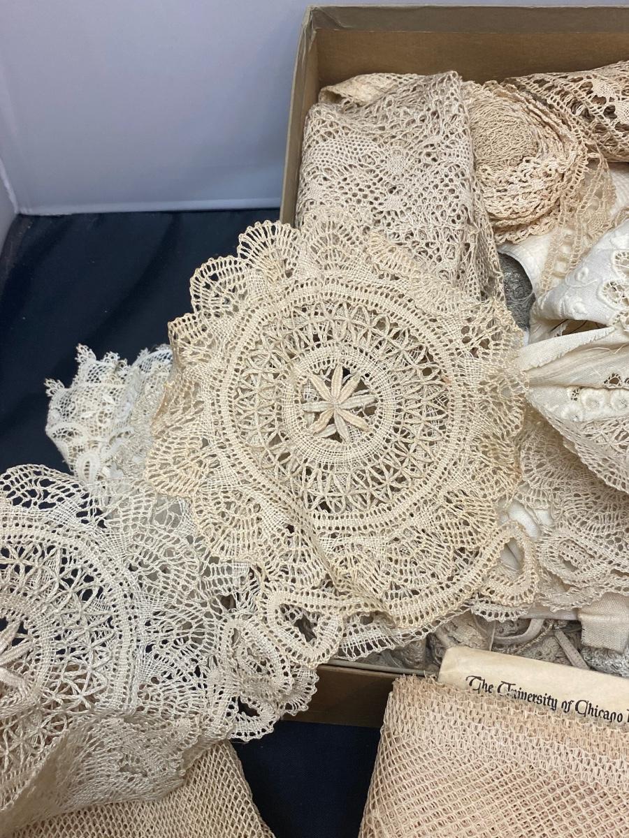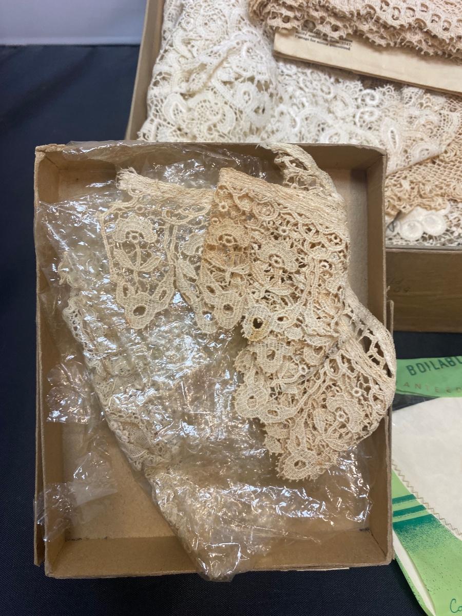 Mixed style lot of vintage and antique lace. Crochet style lace pieces. Many different patterns. Various lengths.
