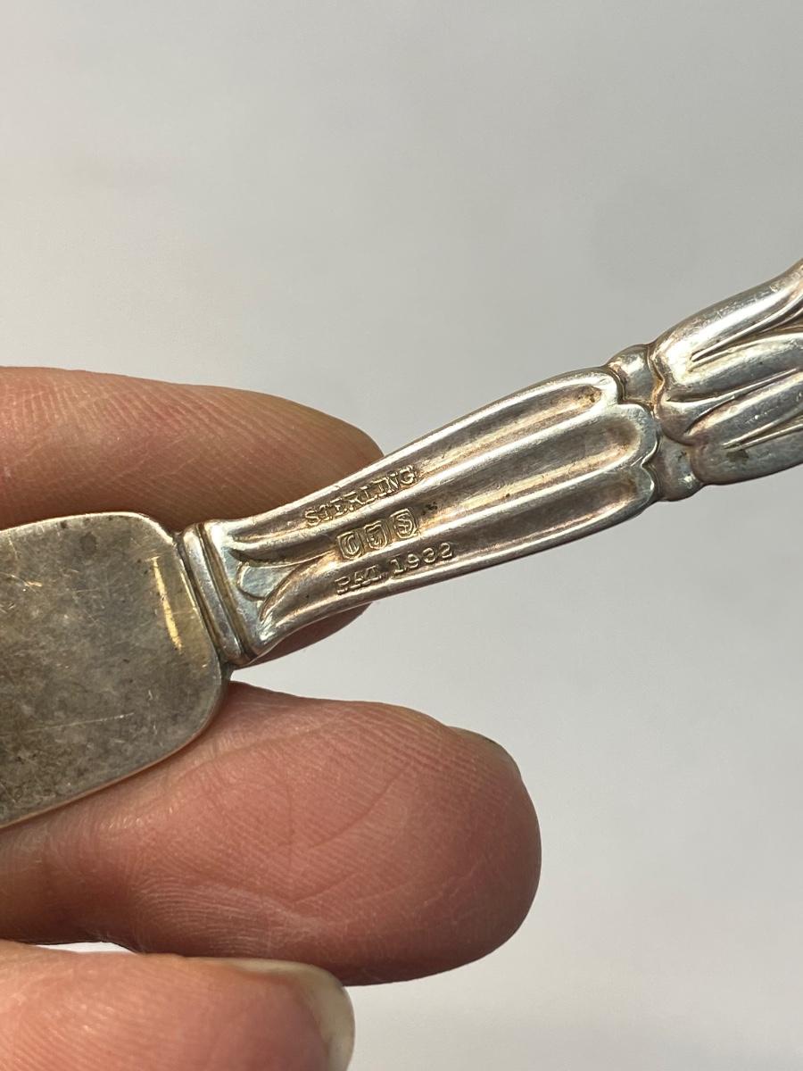 Vintage Antique Monogrammed L Sterling Silver Master Butter Knife. Good antique condition. Marked sterling and hallmarked near blade. About 5.5" length.