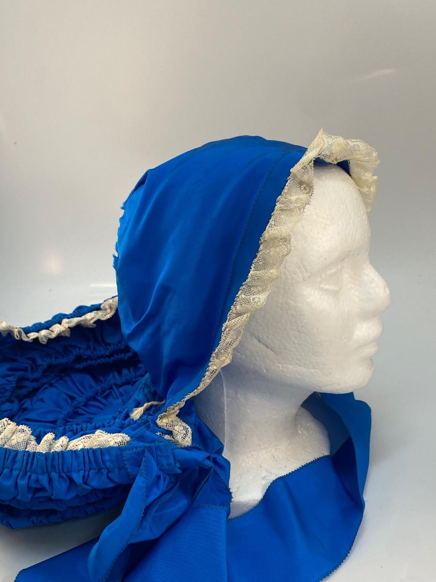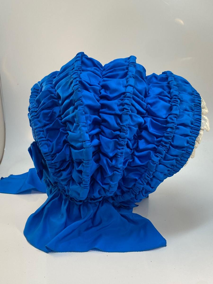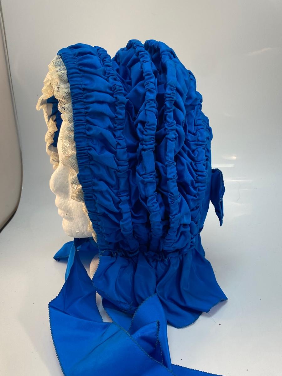 Vintage Antique Royal Blue with White Lace Prairie Bonnet Hat