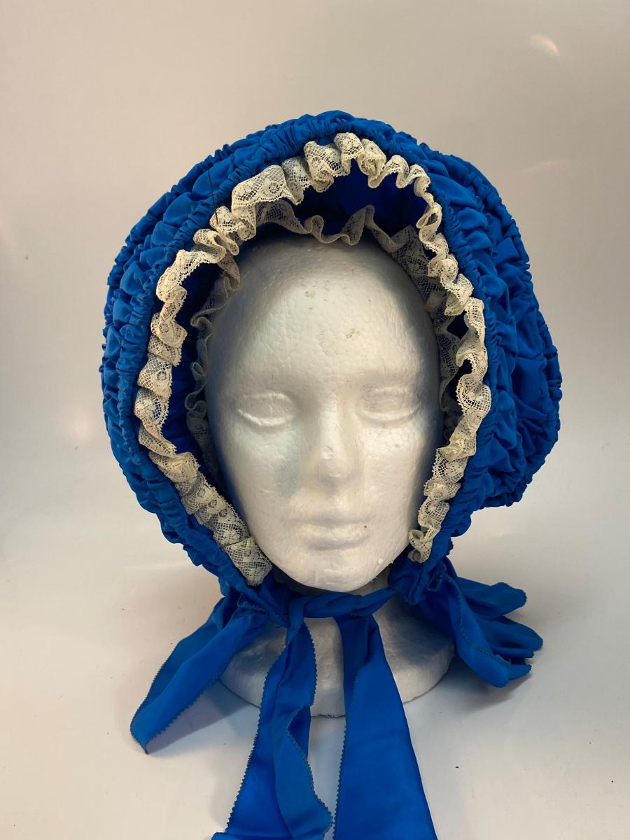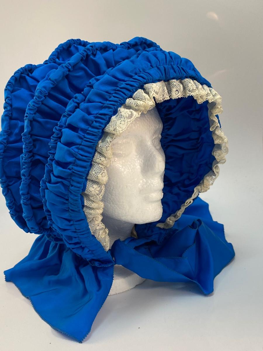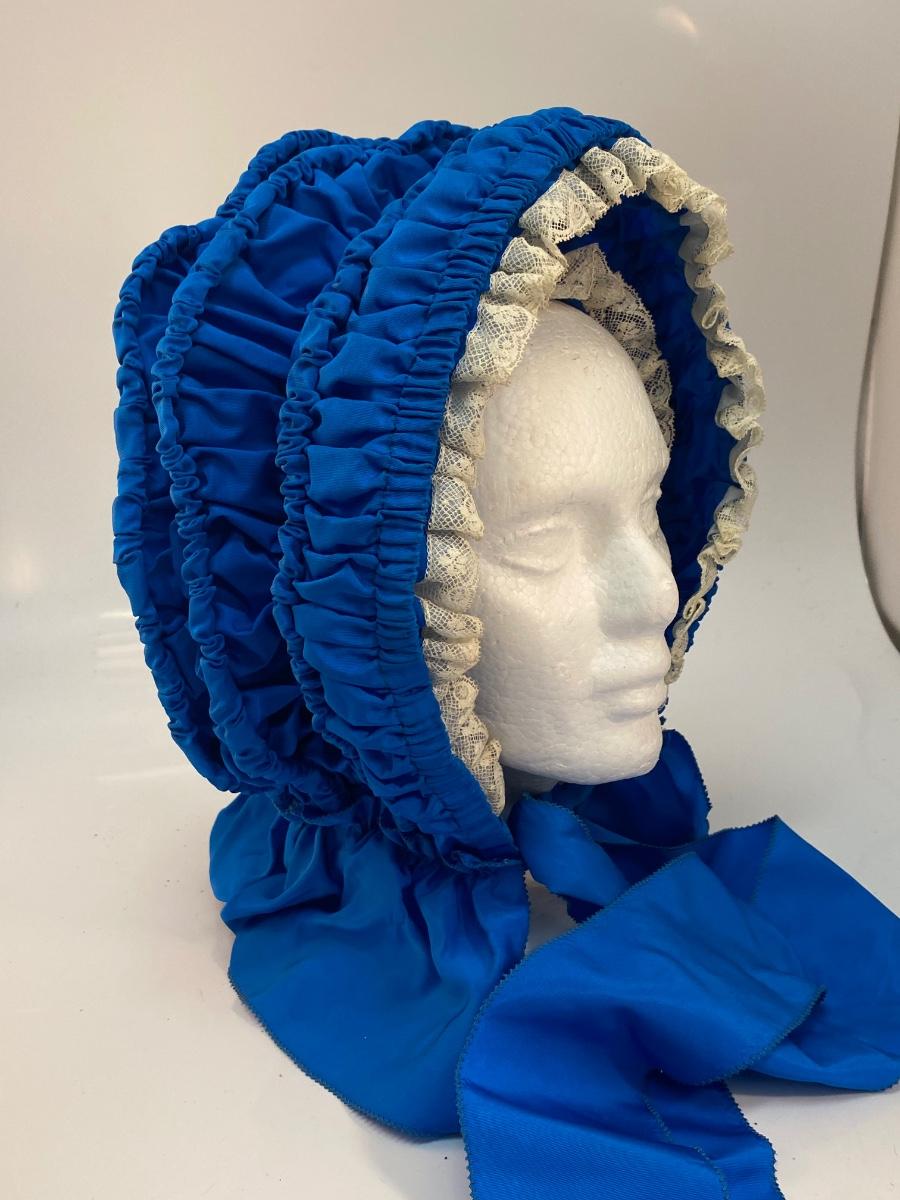Vintage Antique Royal Blue with White Lace Prairie Bonnet Hat