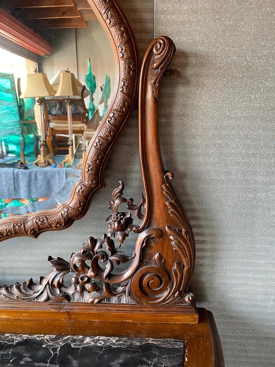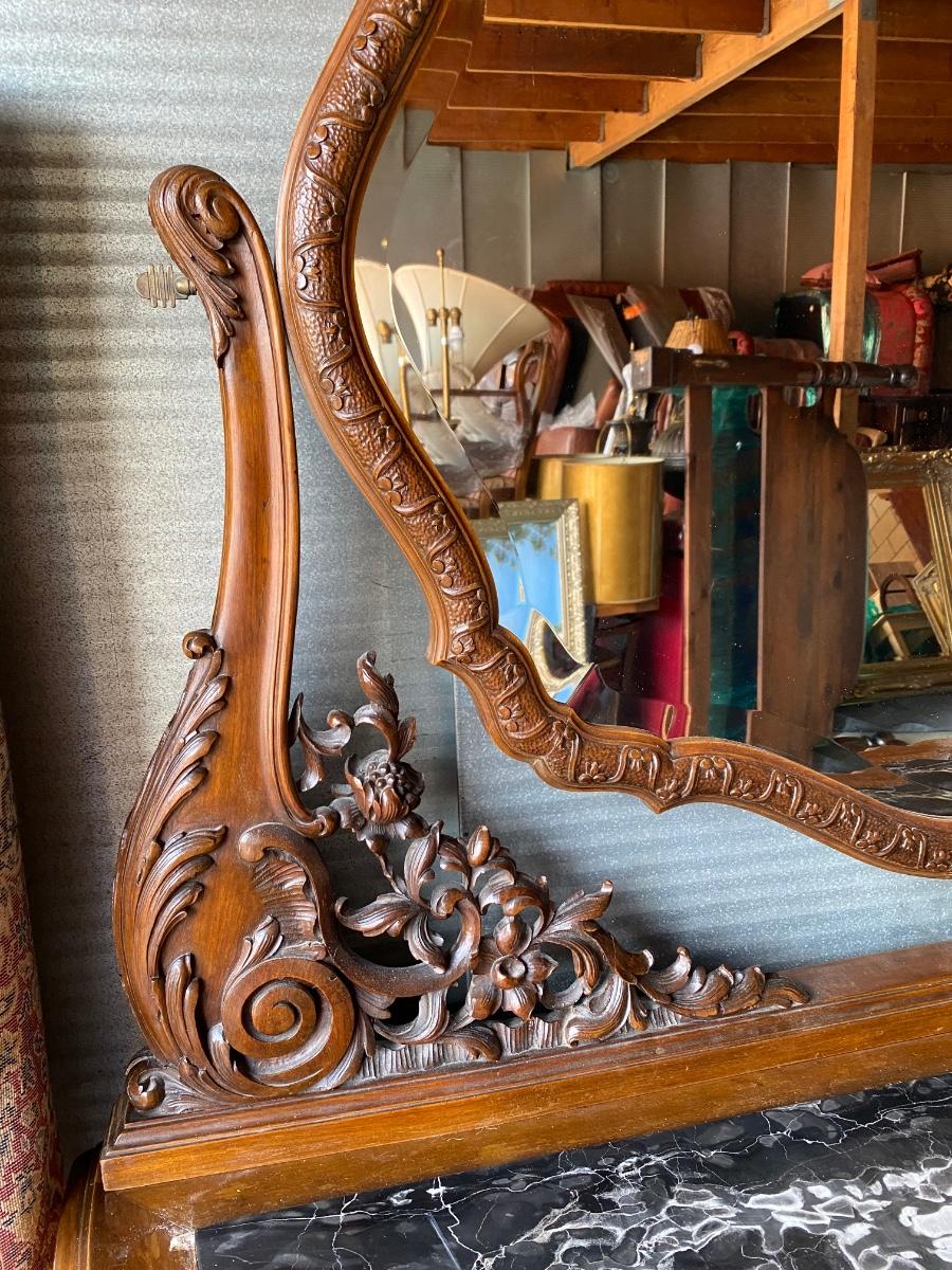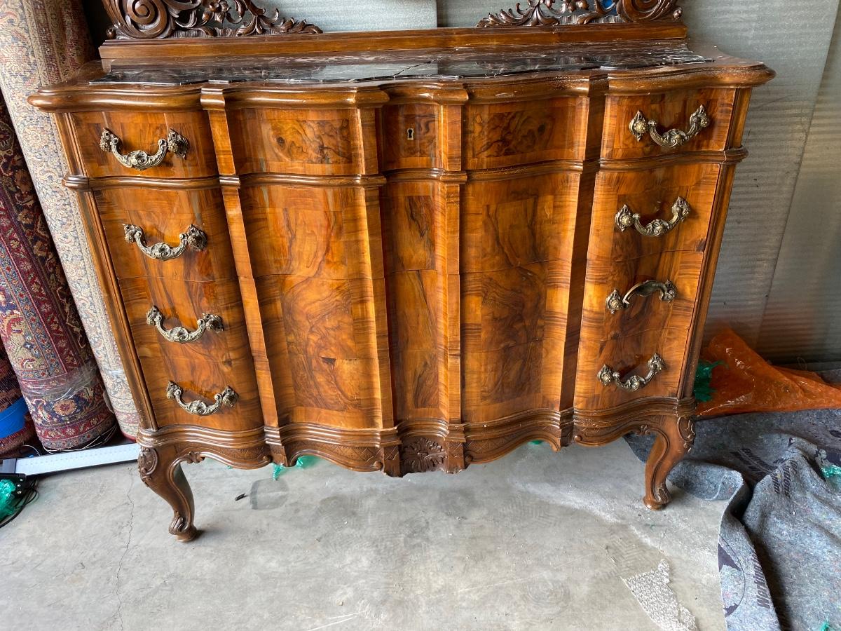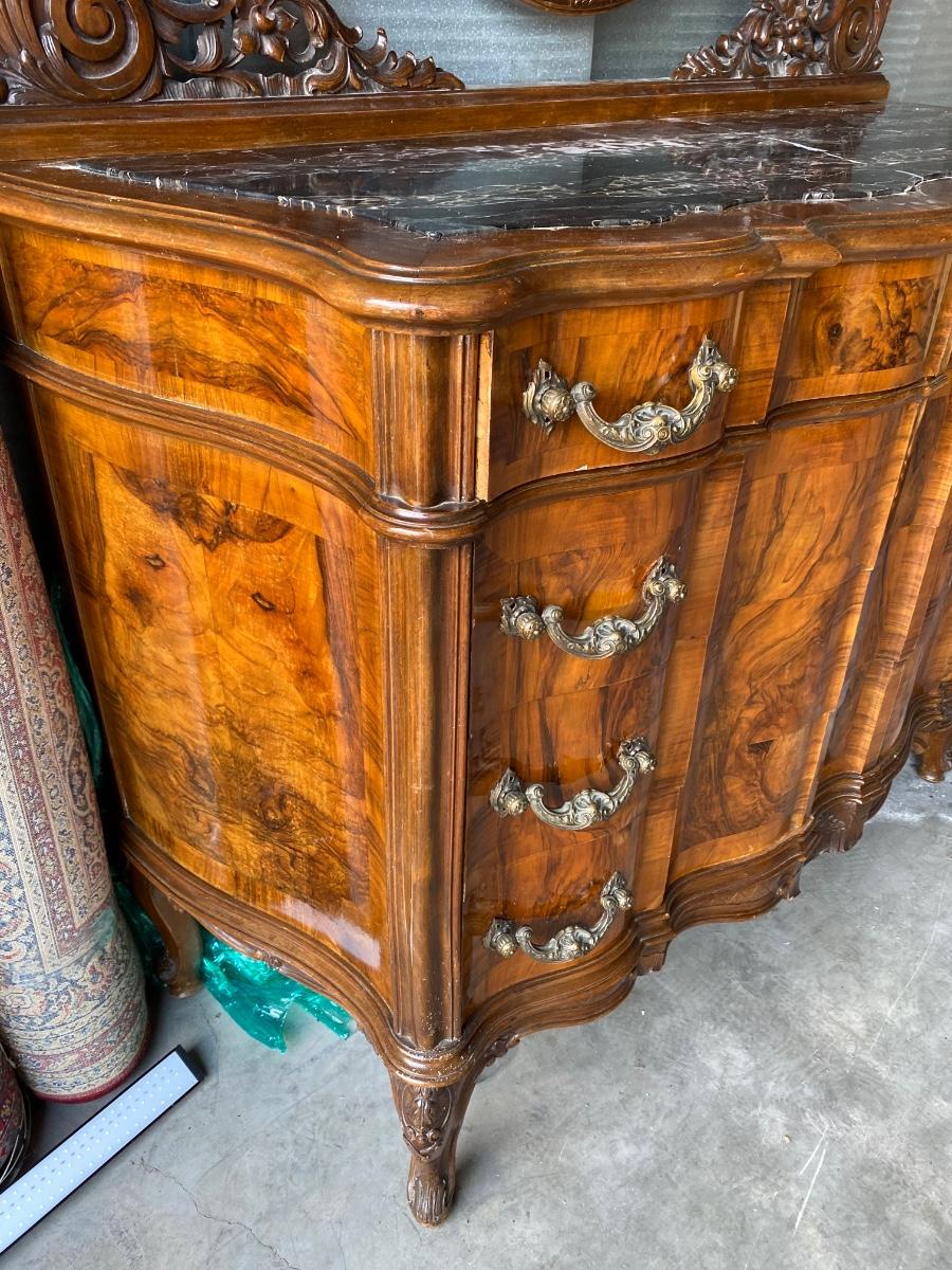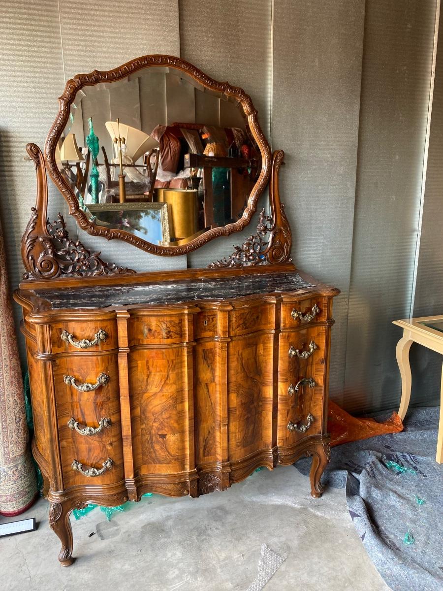 Vintage Antique Serpentine Front Art Nouveau Stone Top Buffet Sideboard Dresser with Tilting Mirror