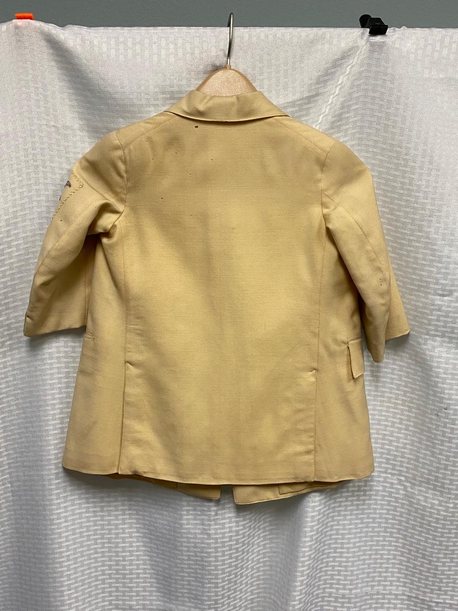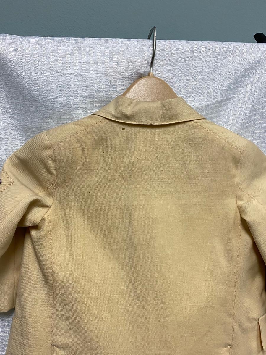 Vintage Antique Small Child Boy Jacket Coat Military Inspired Embroidery. Yellowed from age and there are small moth holes in fabric. Buttons look to have been replaced. Small child size.