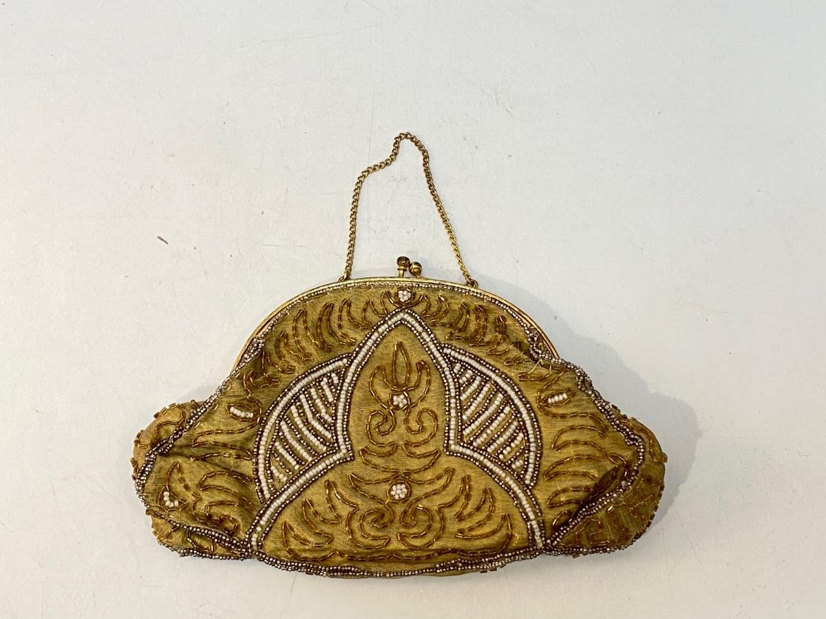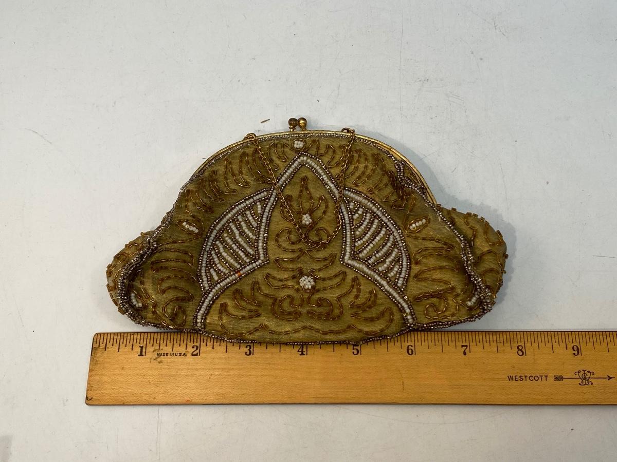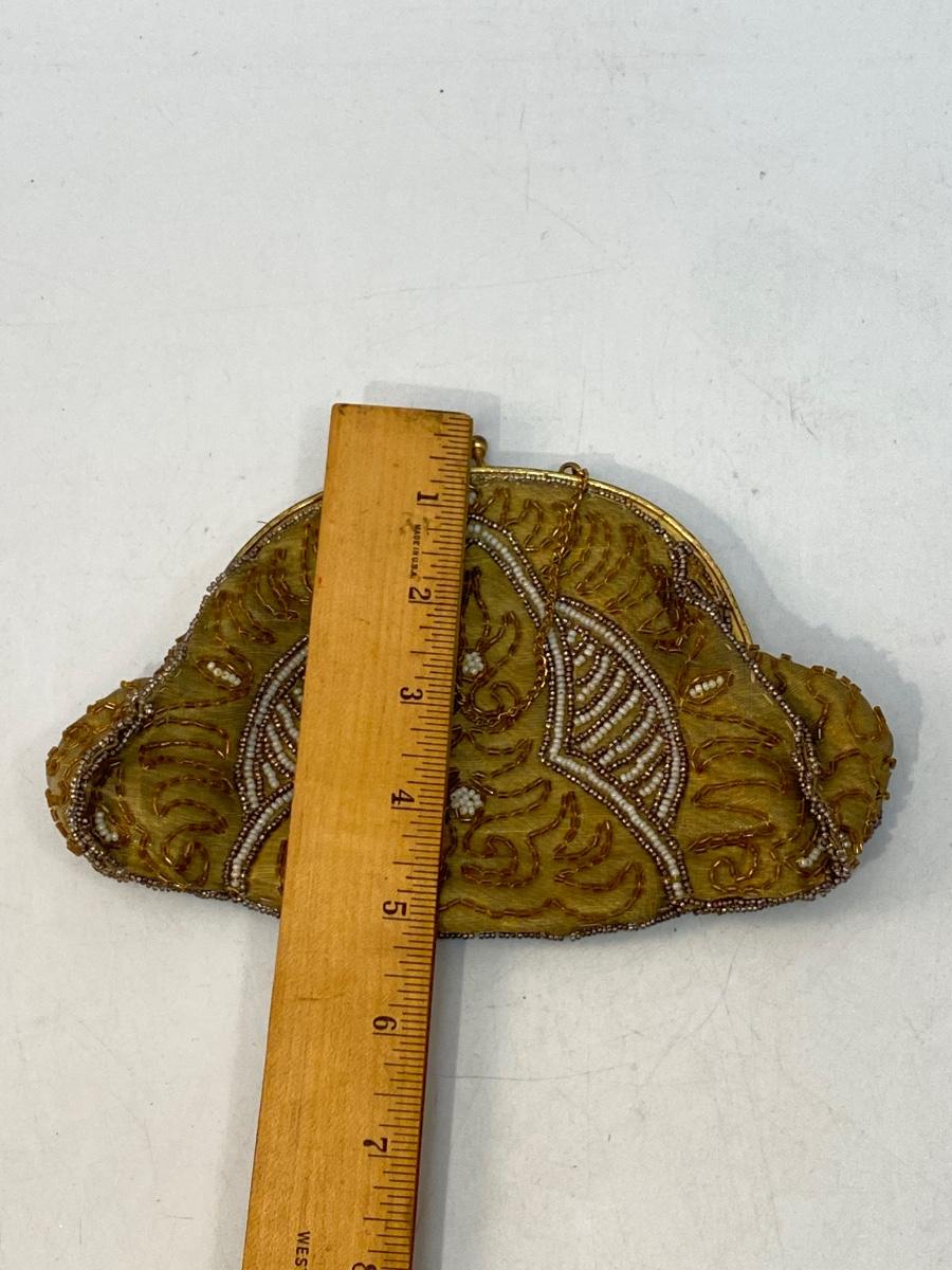 Vintage Antique Small Scalloped Shaped Gold Beaded Handbag Clutch Purse