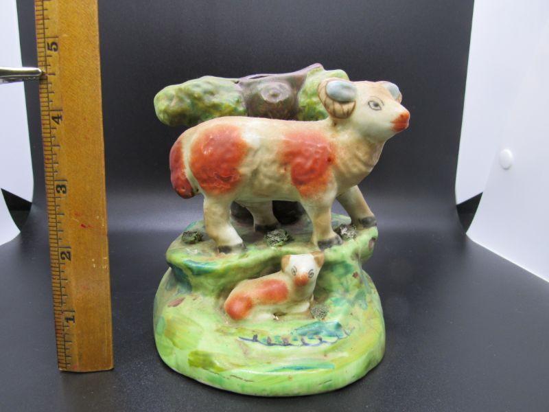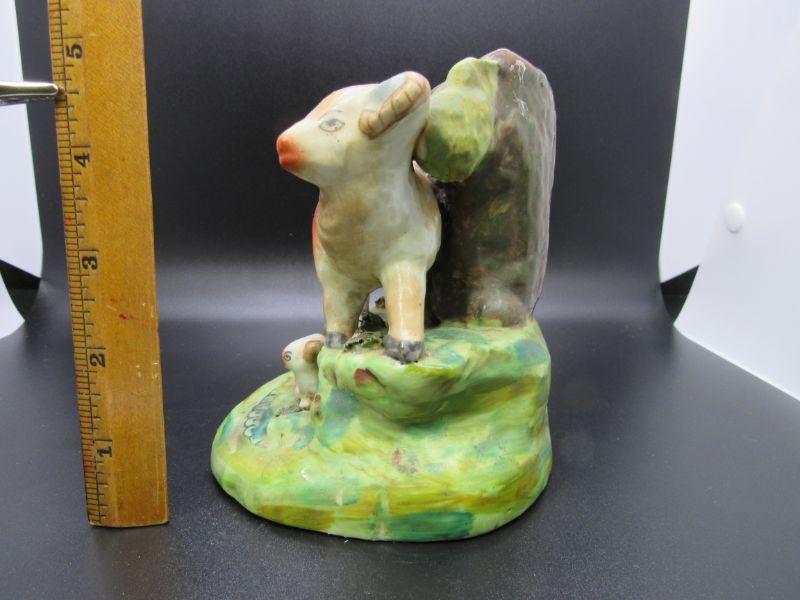 Vintage Antique Staffordshire Pearlware Bocage Ram Ewe Lamb Vase