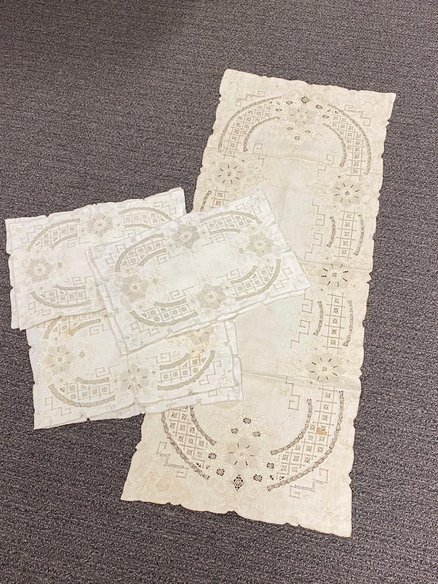 Vintage Antique Table Linen Set - Runner with 6 Placemats