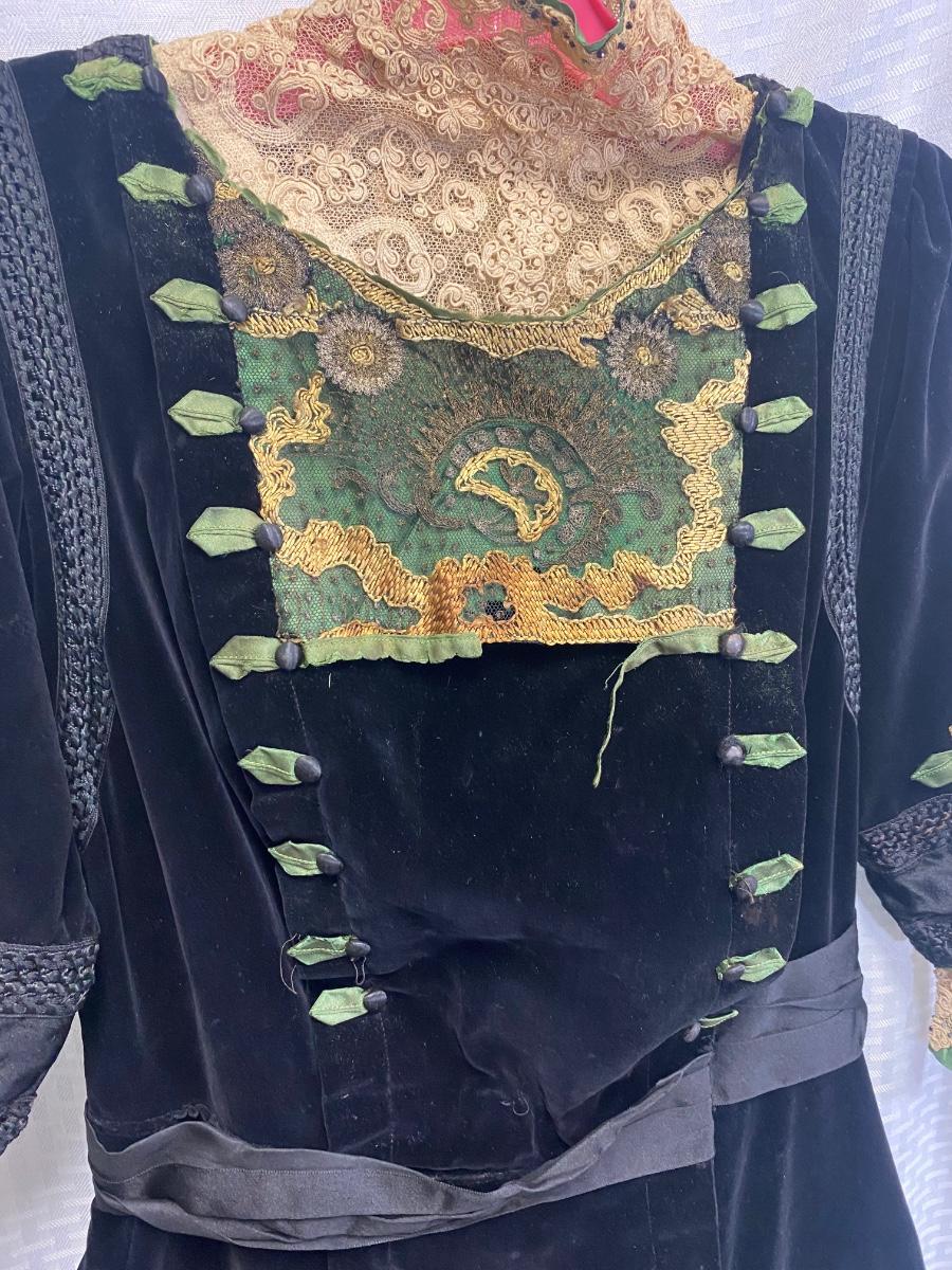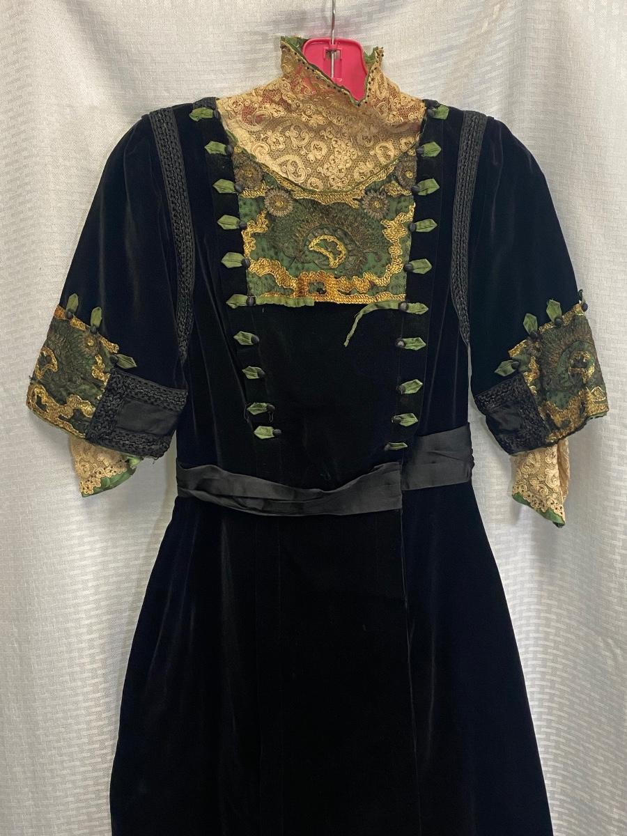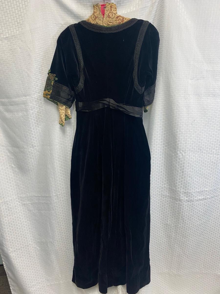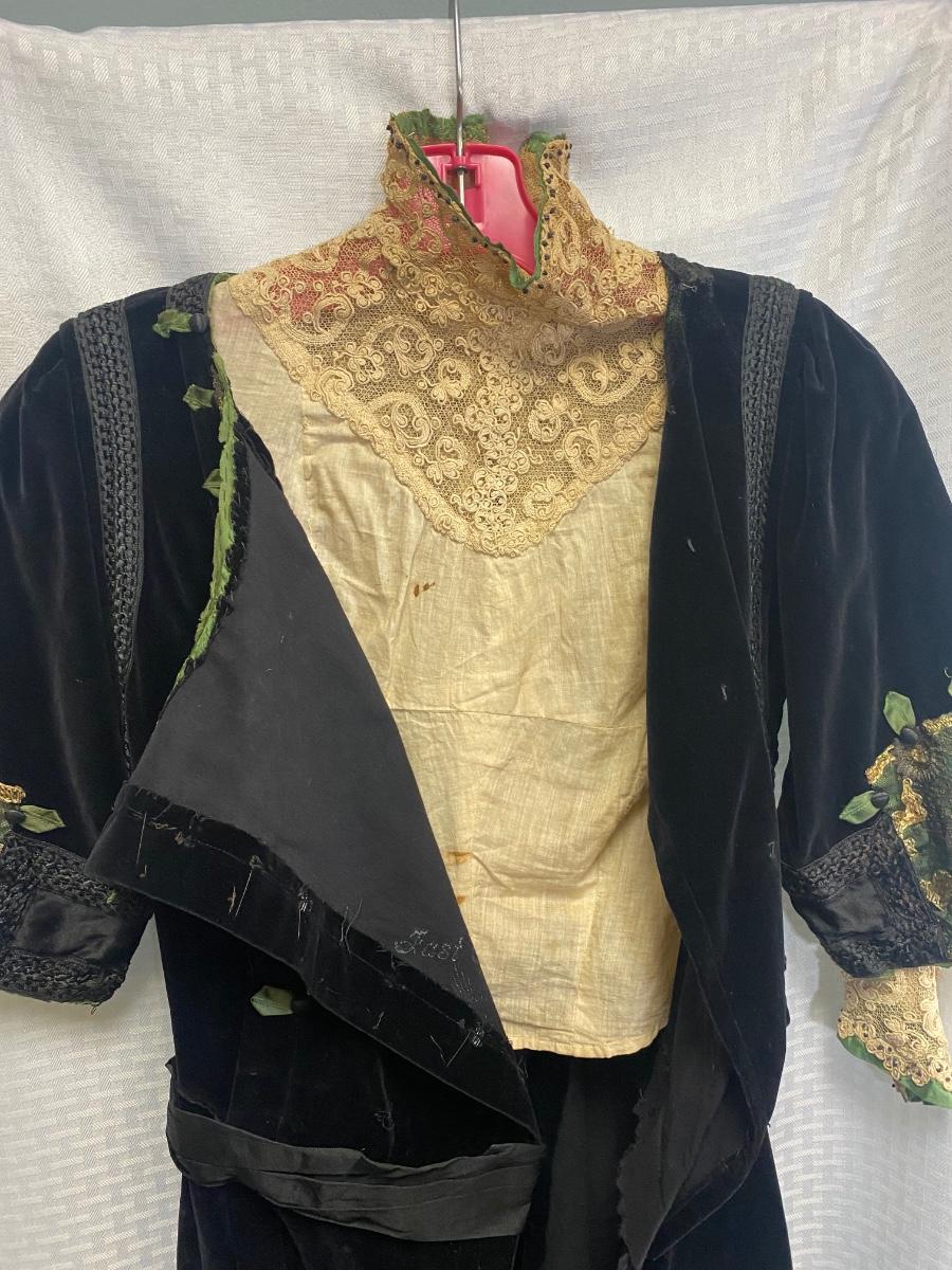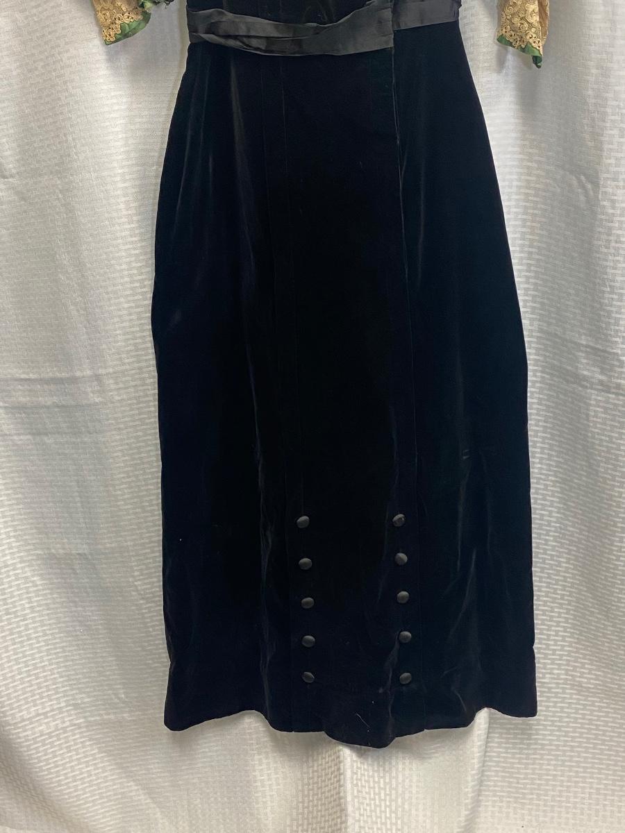 Vintage Antique Victorian Art Deco Velvet Slim Fit Dress with Lace Blouse
