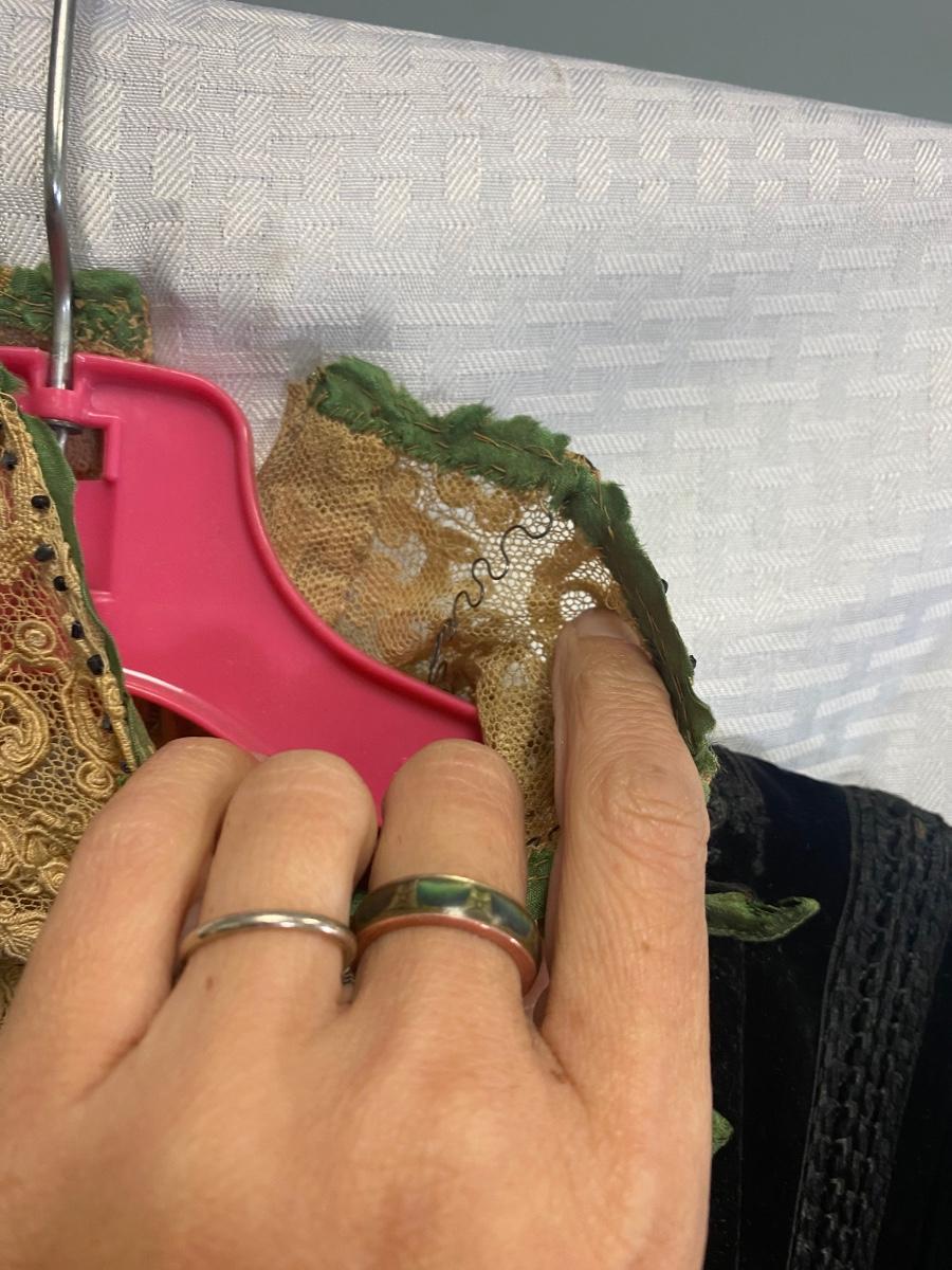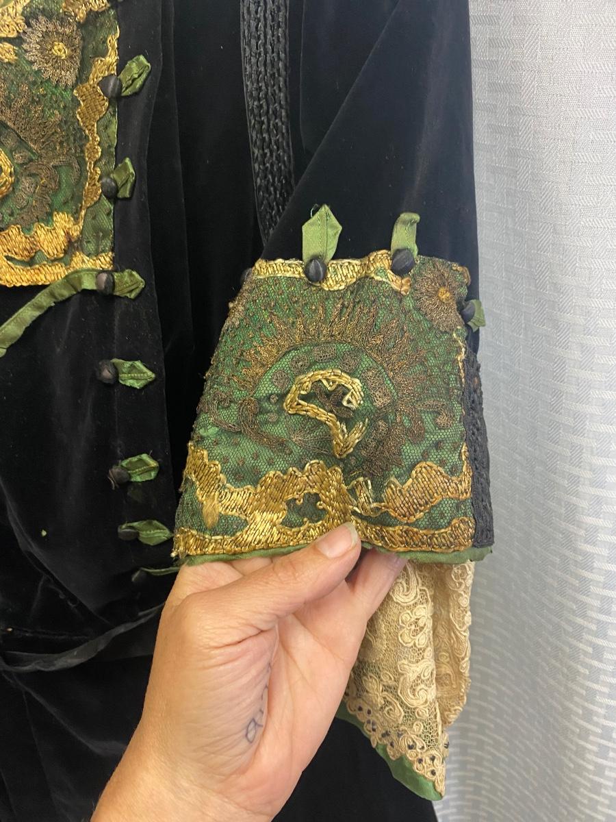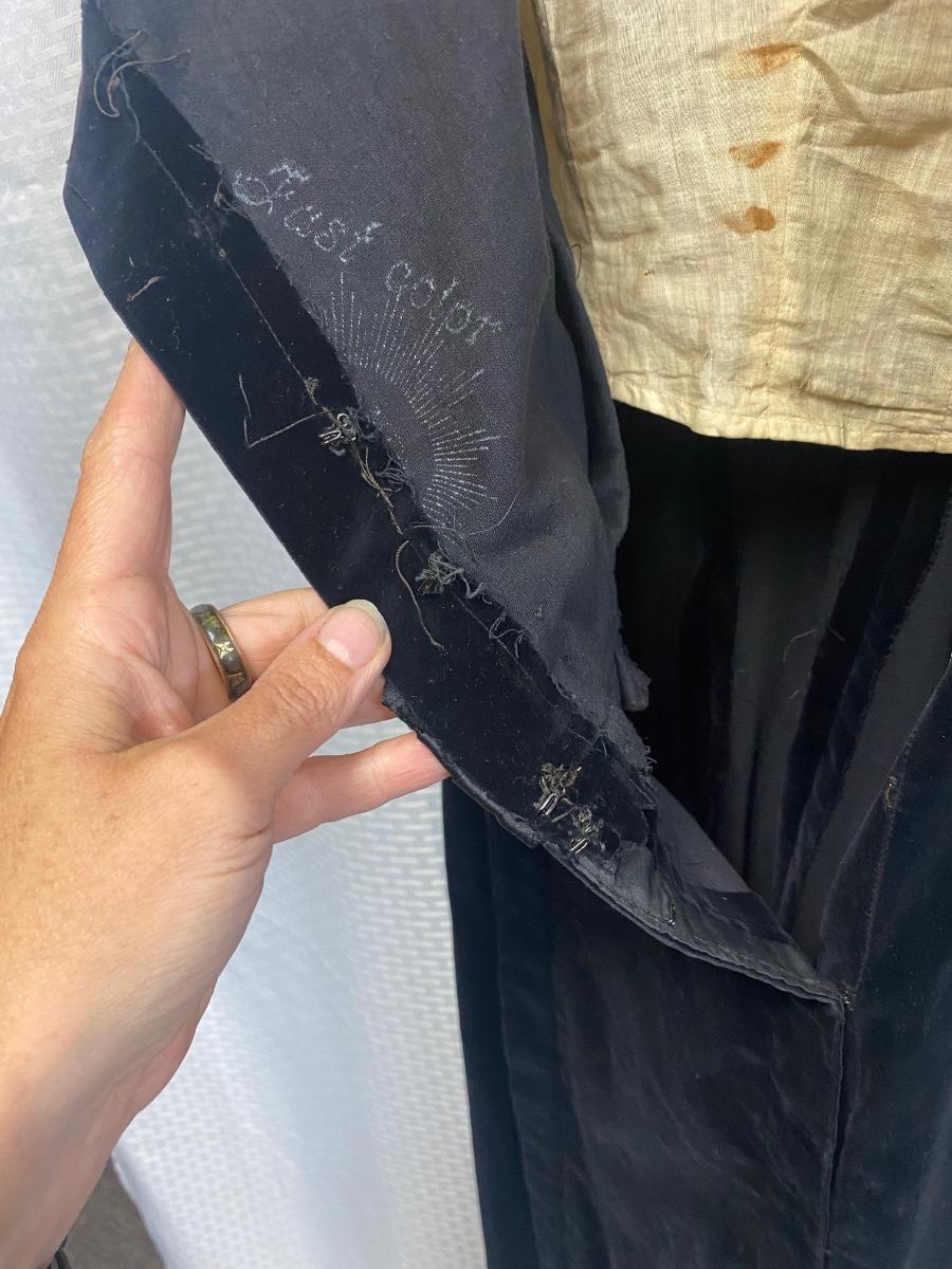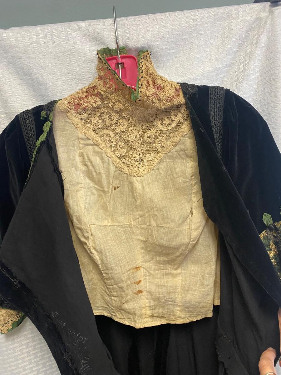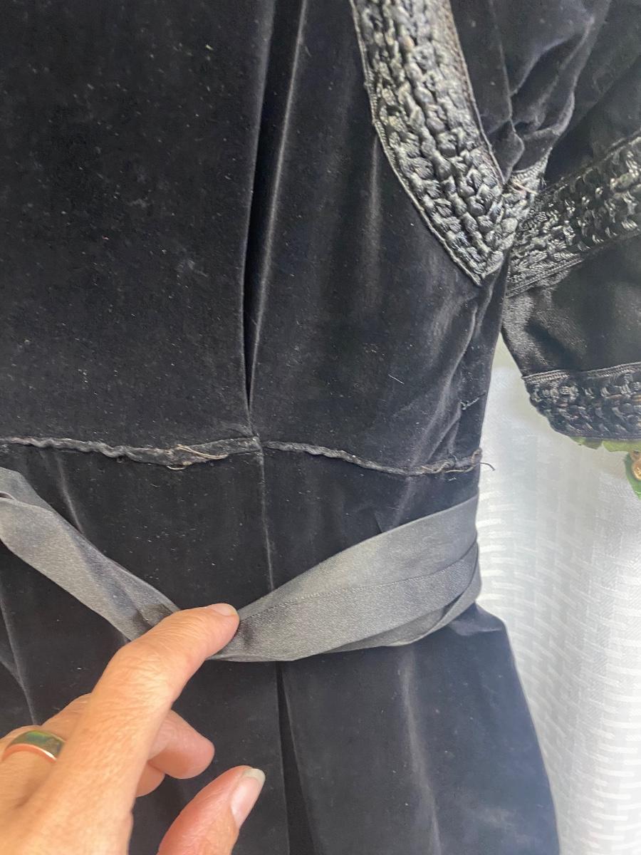 Vintage Antique Victorian Art Deco Velvet Slim Fit Dress with Lace Blouse. Velvet dress may have been altered a little. Can be worn with or without the lace blouse underneath. Small, would not fit size 8 mannequin. Has signs of age but in an overall good condition.