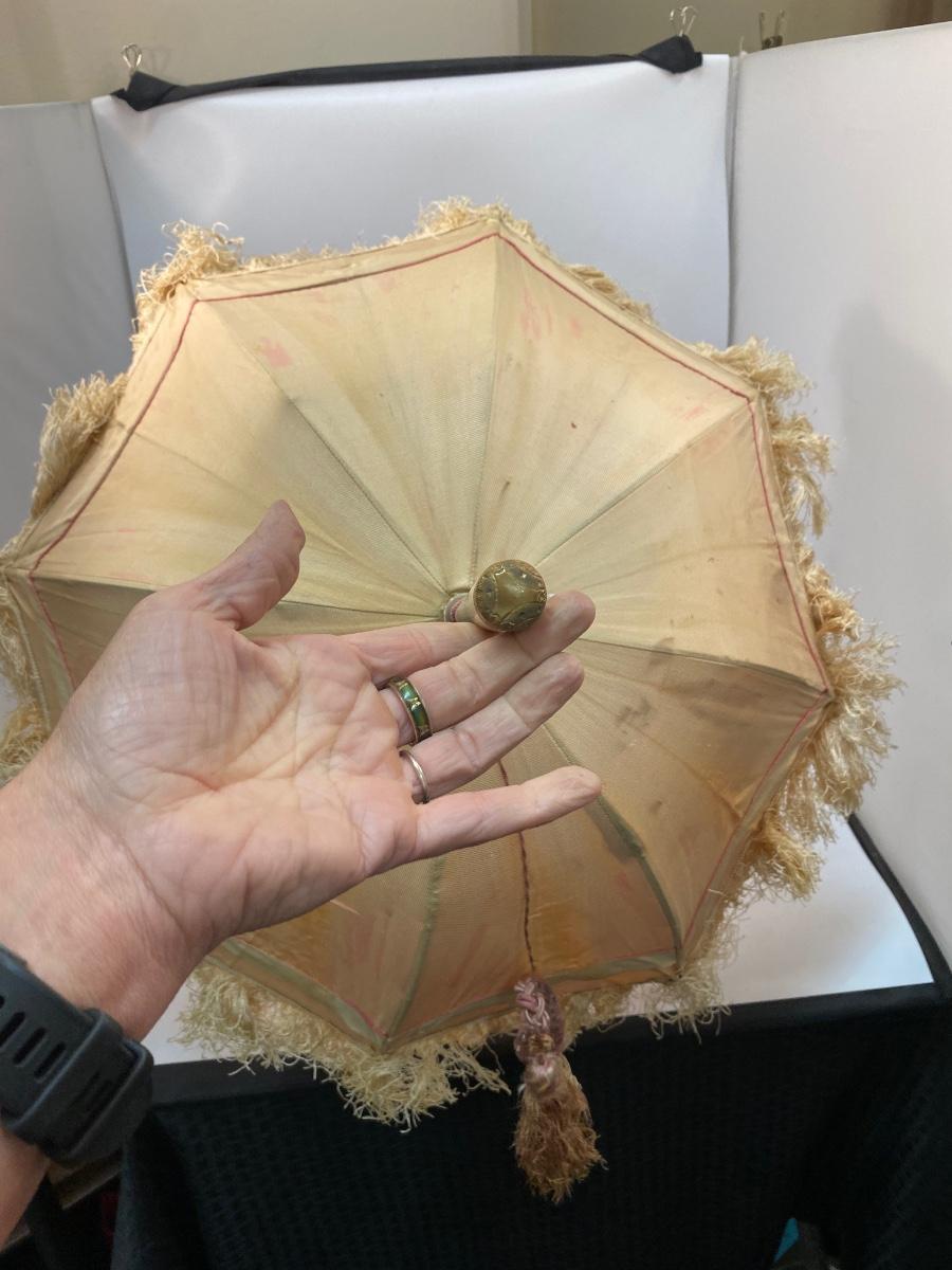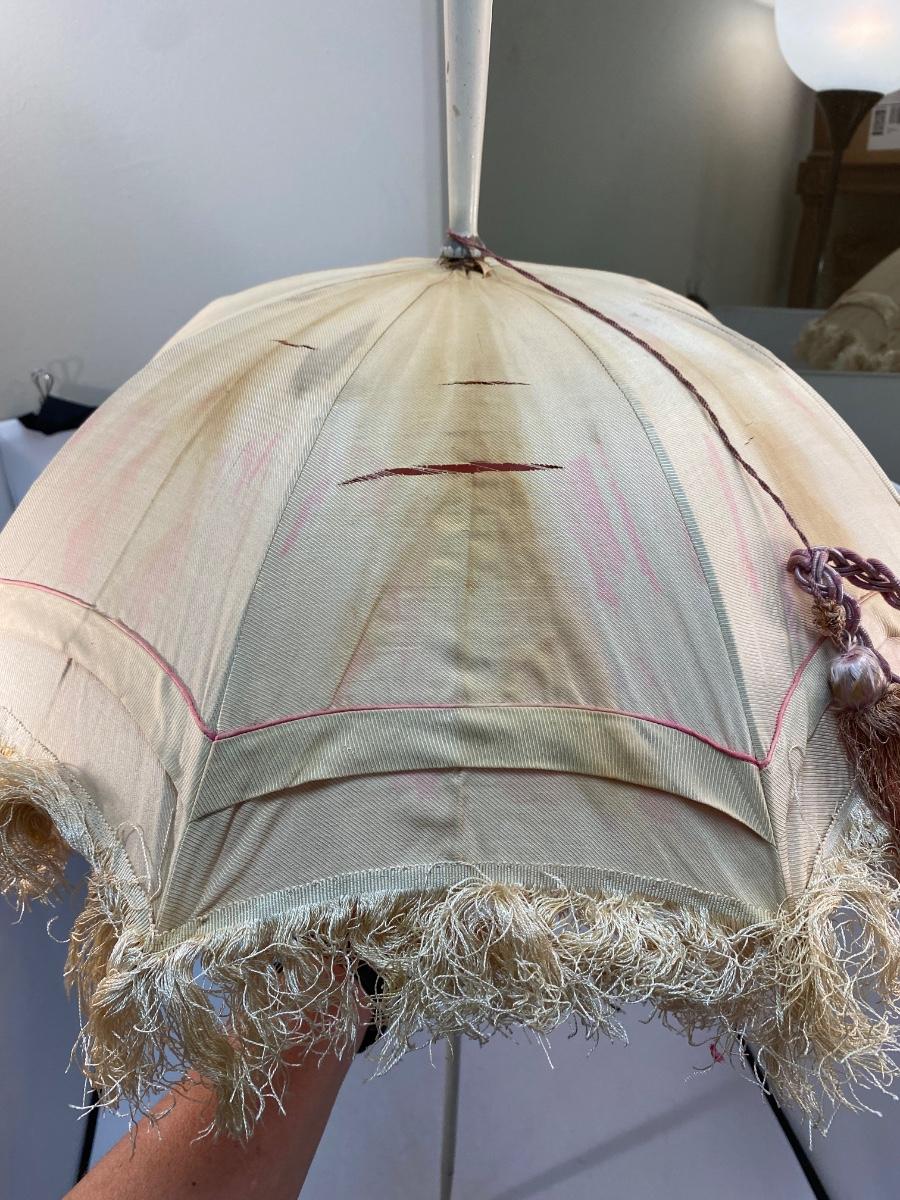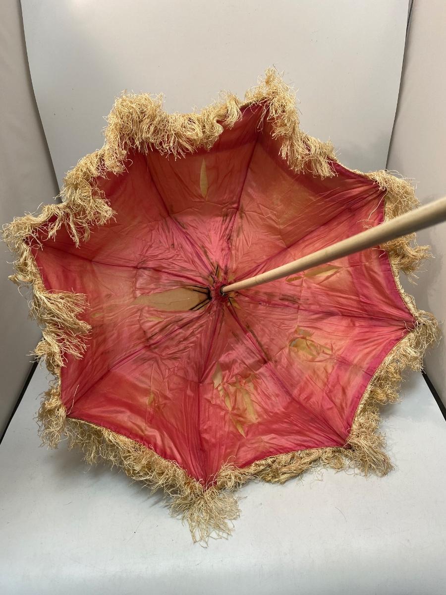Vintage Antique Victorian Fringed Parasol Umbrella White & Pink
