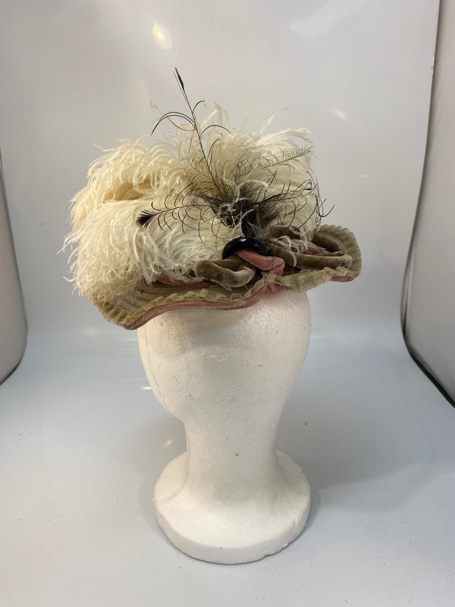Vintage Antique Victorian Small Fascinator Style Feathered Hat