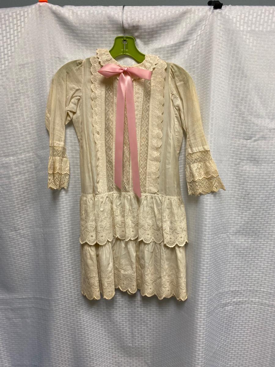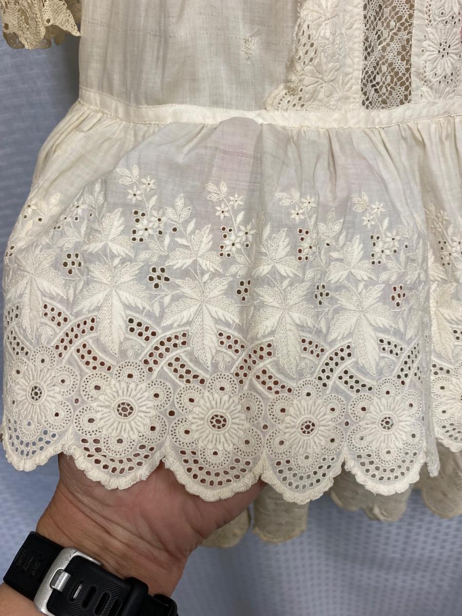 Vintage Antique Victorian Youth White Cotton & Lace Tea Sun Dress