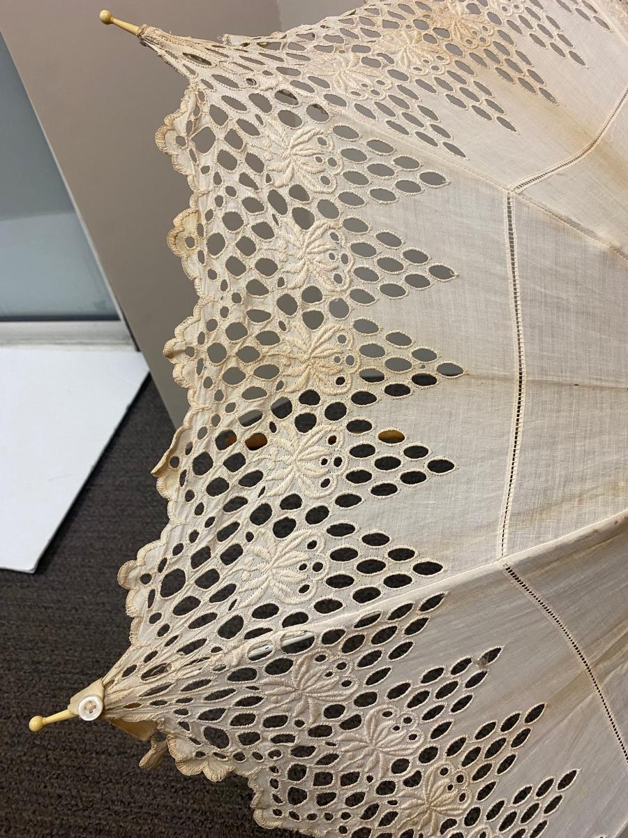 Vintage Antique White Cotton Eyelet Edge Parasol Umbrella