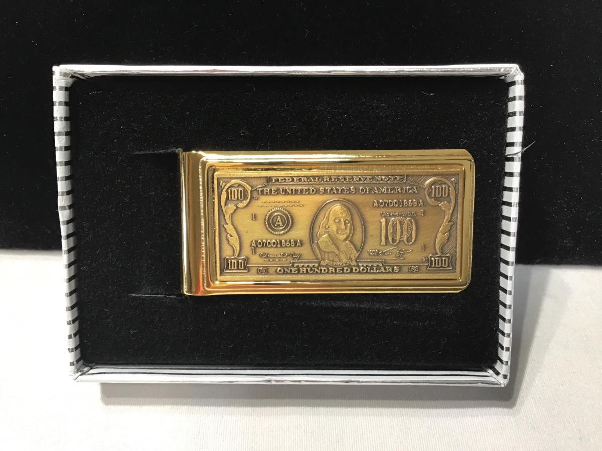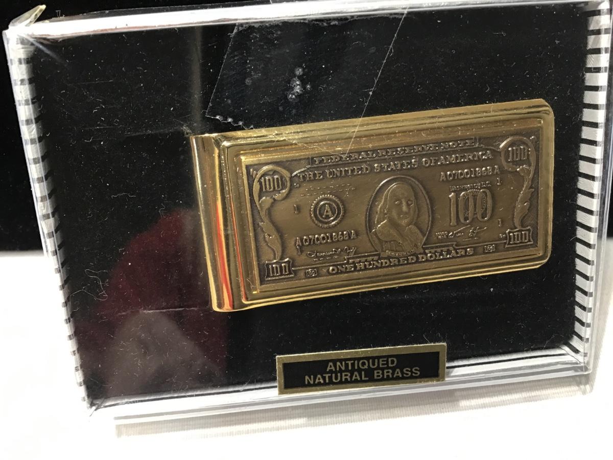 Vintage Antiqued Brass 100 Money Clip in Original Box