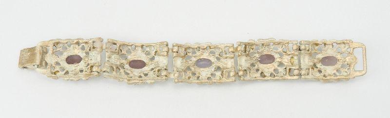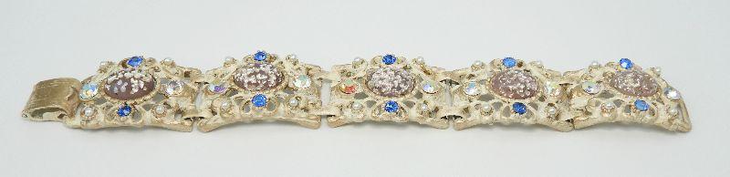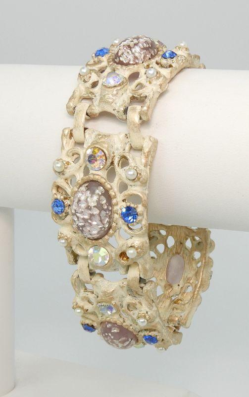 This bracelet measures 8" in length, and is 1" wide. As with all vintage jewelry, this item was previously owned. In most cases expect some wear associated with age. Please view pictures as they are part of the description, and ask questions before bidding. Thank you for visiting Aunt Ellie's Vintage Sales. Happy bidding and good luck!