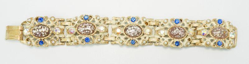 Vintage Antiqued Gold Over White Enamel Bracelet