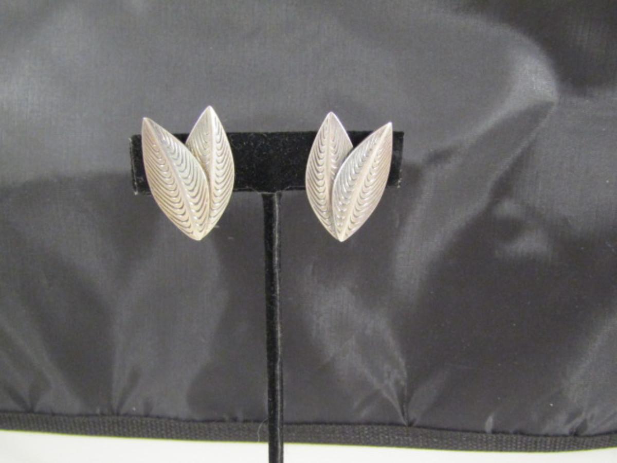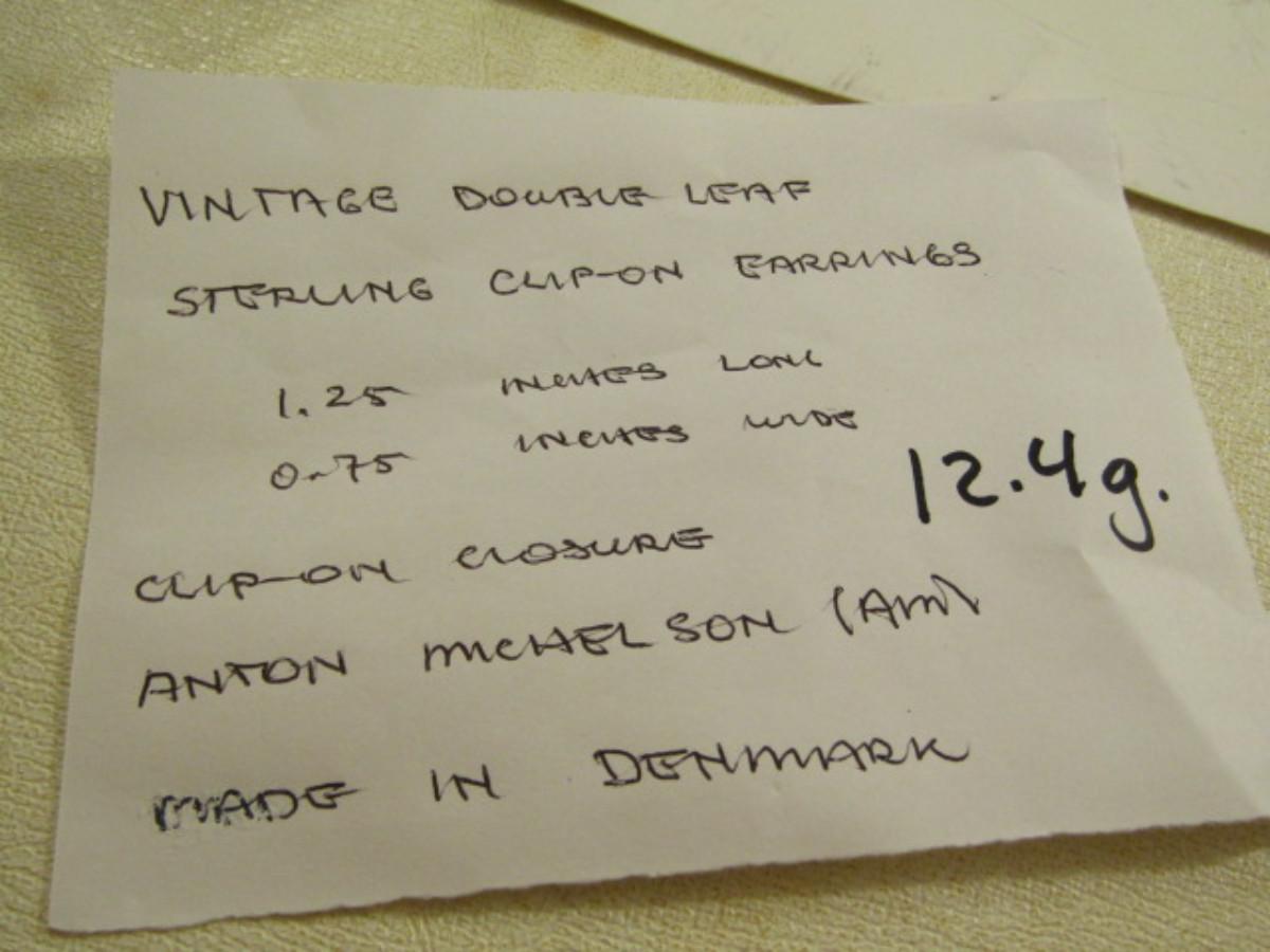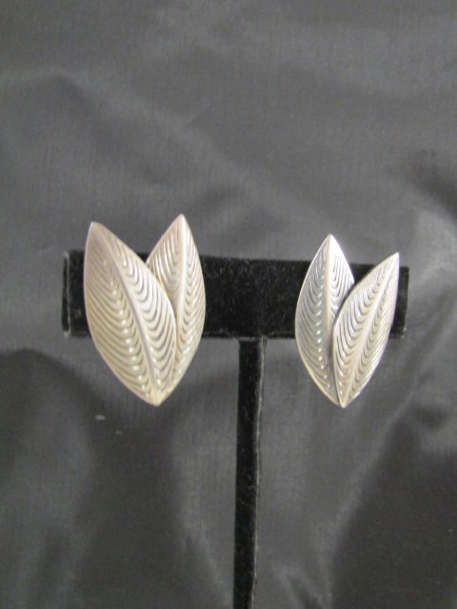 Vintage Anton Michelsen Sterling Silver Double Leaf Clip-On Earrings- Made in Denmark- Approx 12.4 Grams (#19)