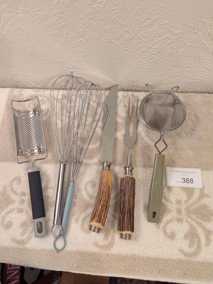 vintage Anton wingmen jar Solingen rostfrei Stag handle carving set and other utensils