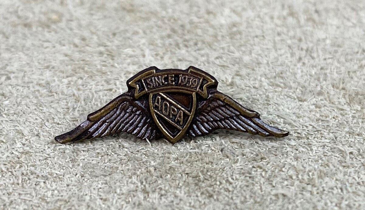 Excellent condition on this A.O.P.A. wings lapel pin from the Aircraft Owners and Pilots Association...founded at Wings Field outside Philadelphia in 1939...This pin from the estate of a long-serving USAF Colonel...Measures 7/8" / 22mm.