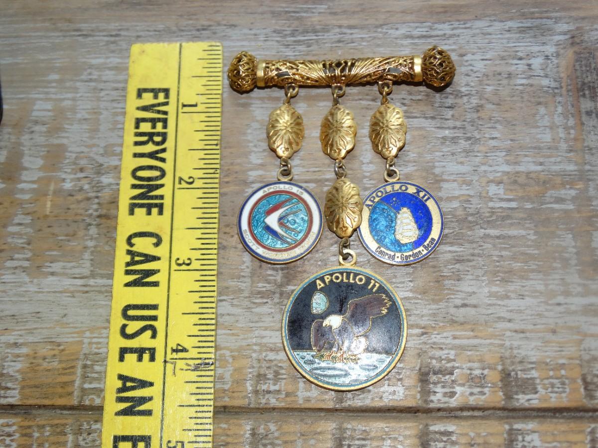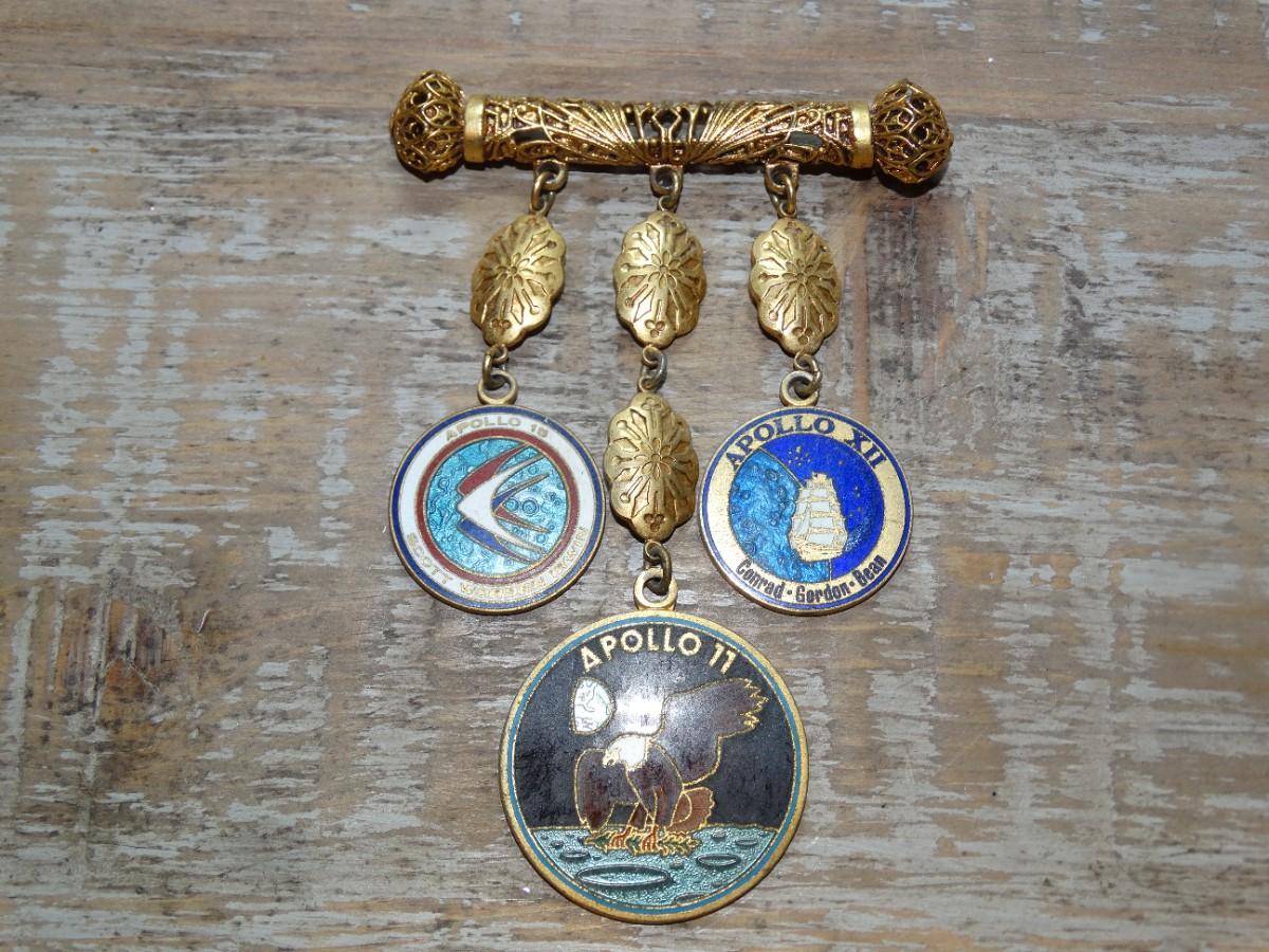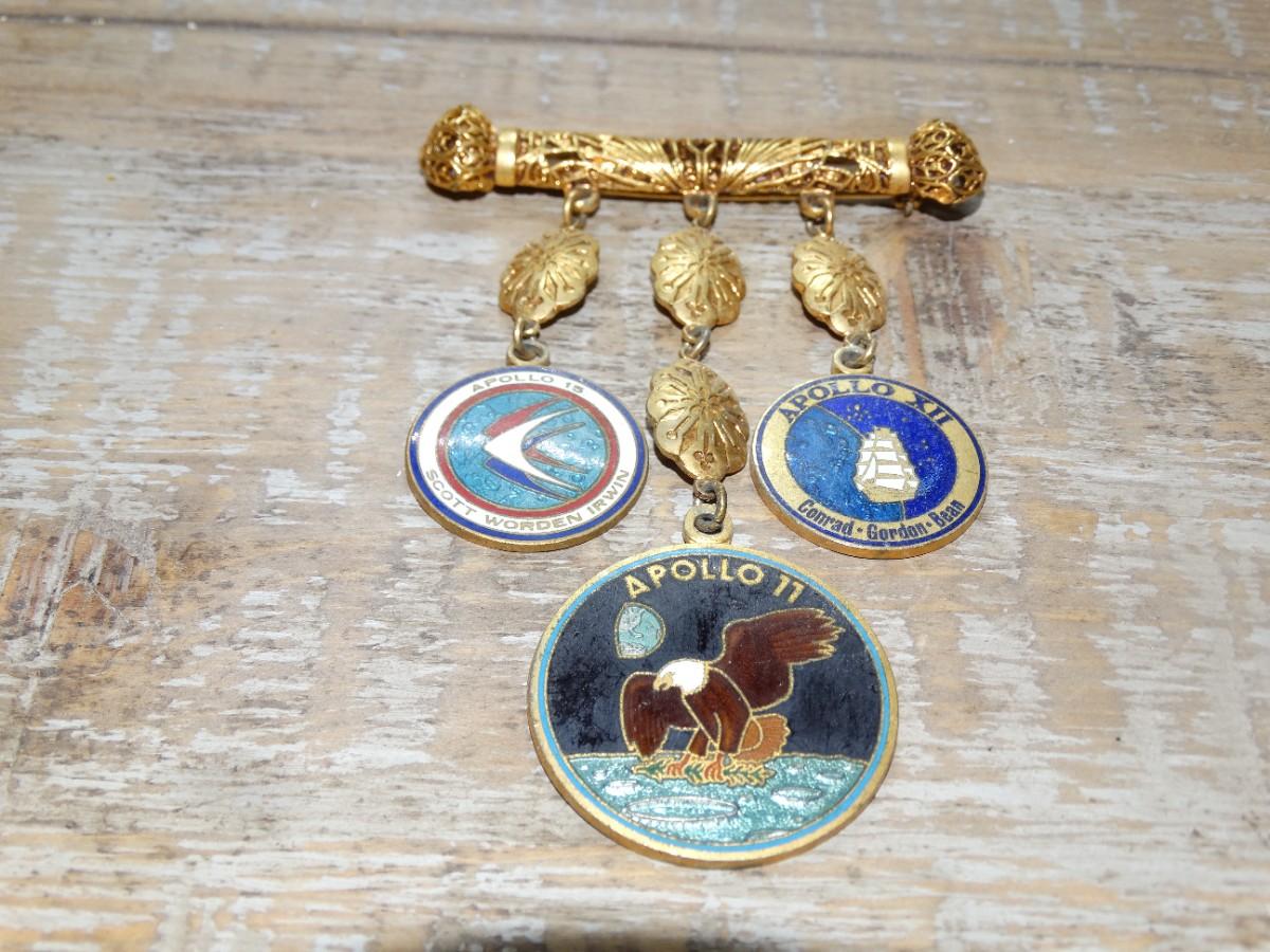 Vintage Apollo II Charm Pendant Brooch, Gold Tone, Apollo 15, Apollo XII