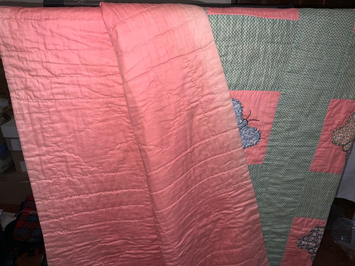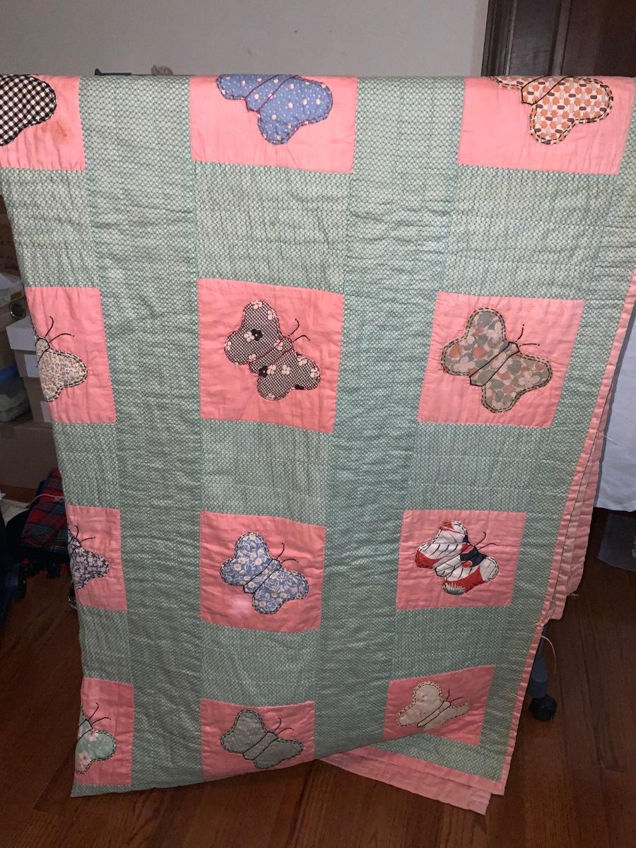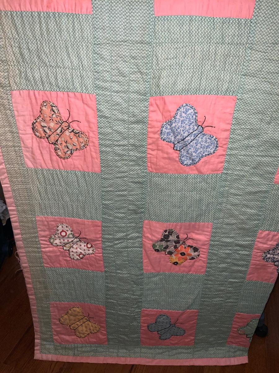 Vintage appliqué quilt 66” x 80”. Butterflies.. please note some fading and Tearing. overall, good vintage condition