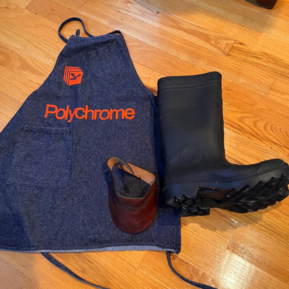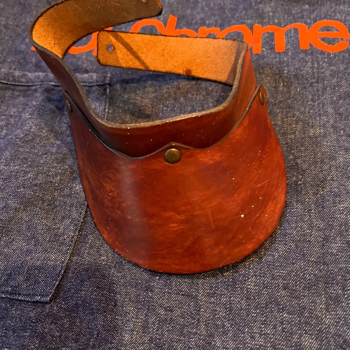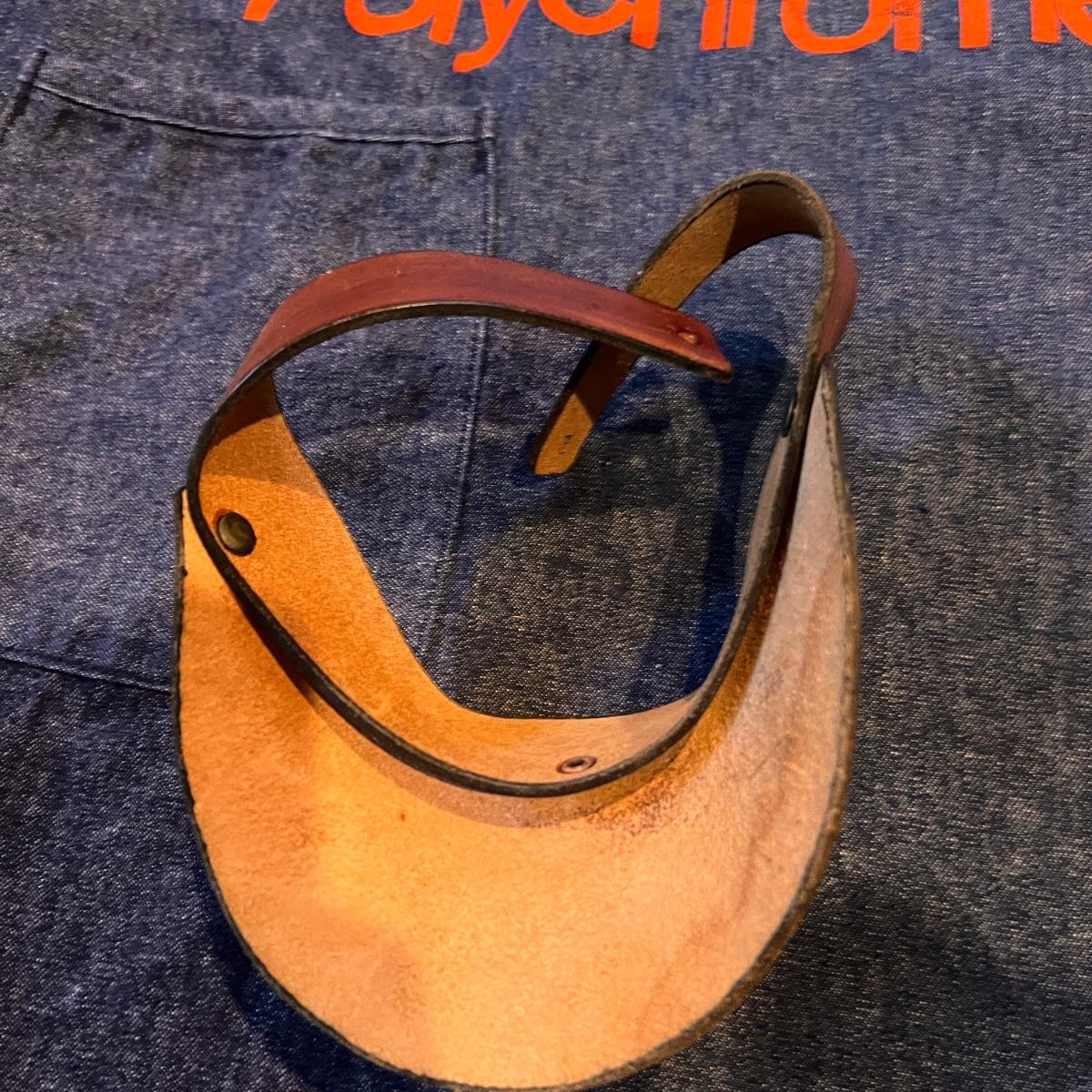 Vintage Apron, Leather Visor, Boots