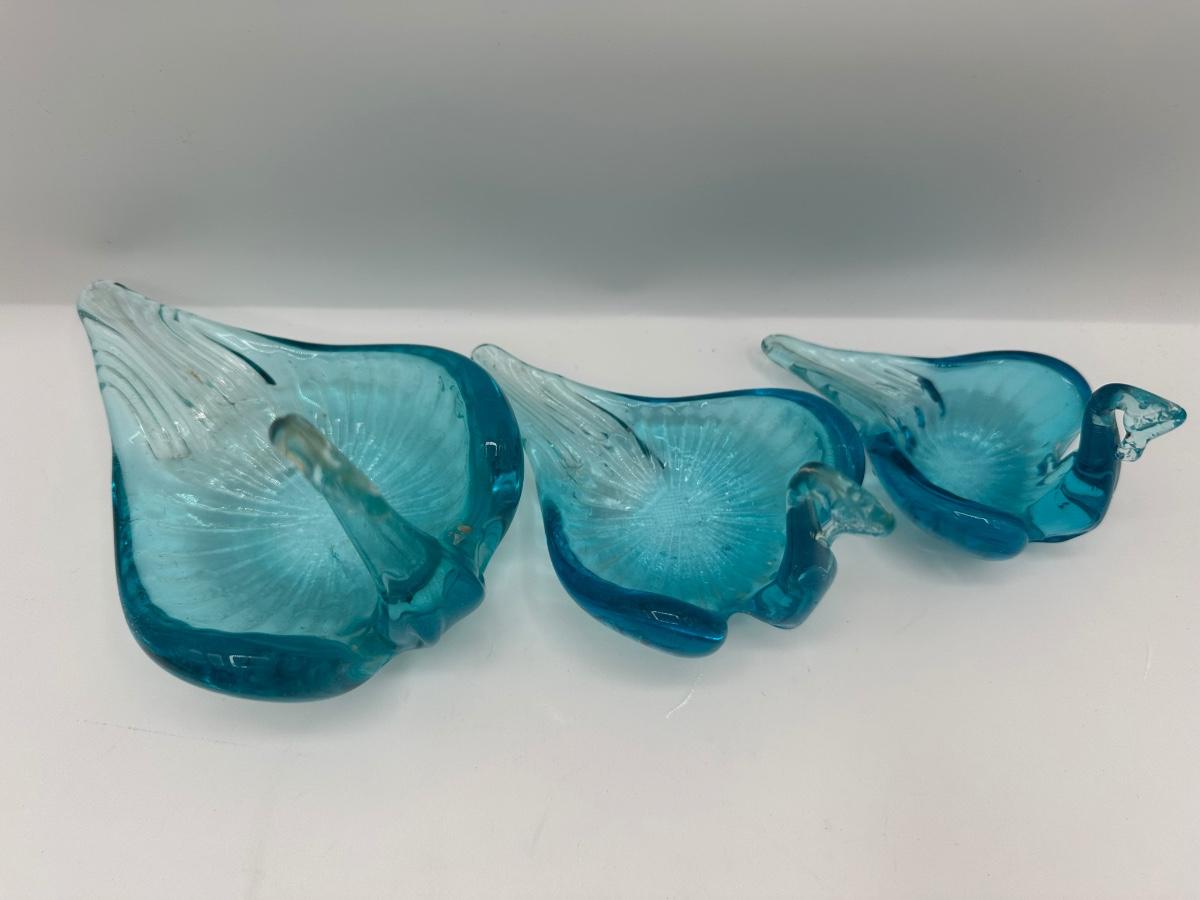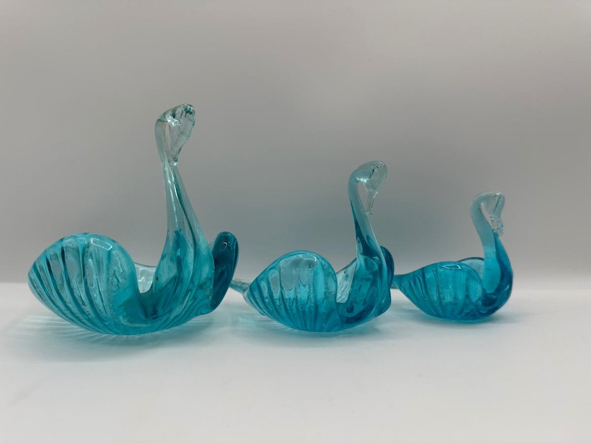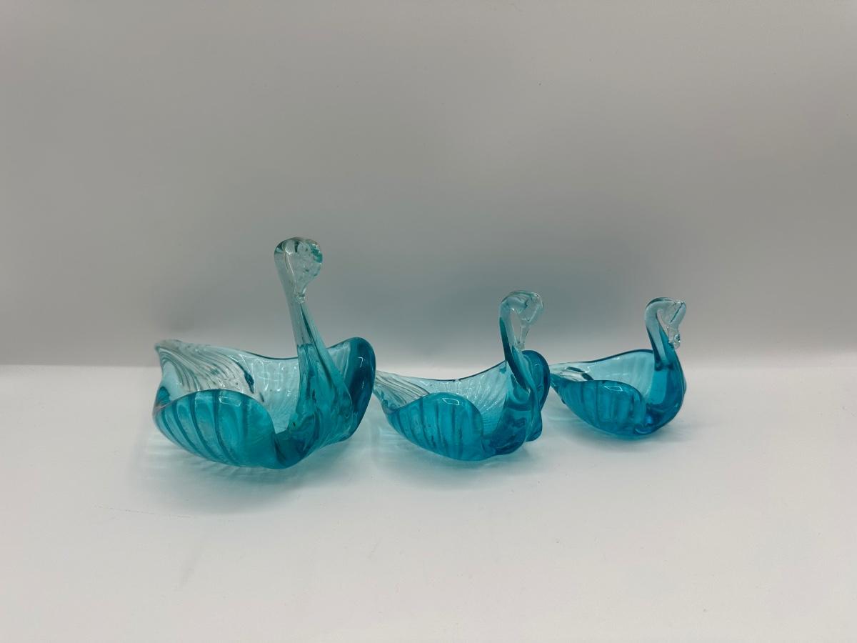 Vintage Aqua Blue Art Glass Nesting Swans Trinket Dishes Set of 3