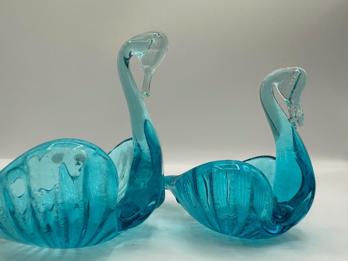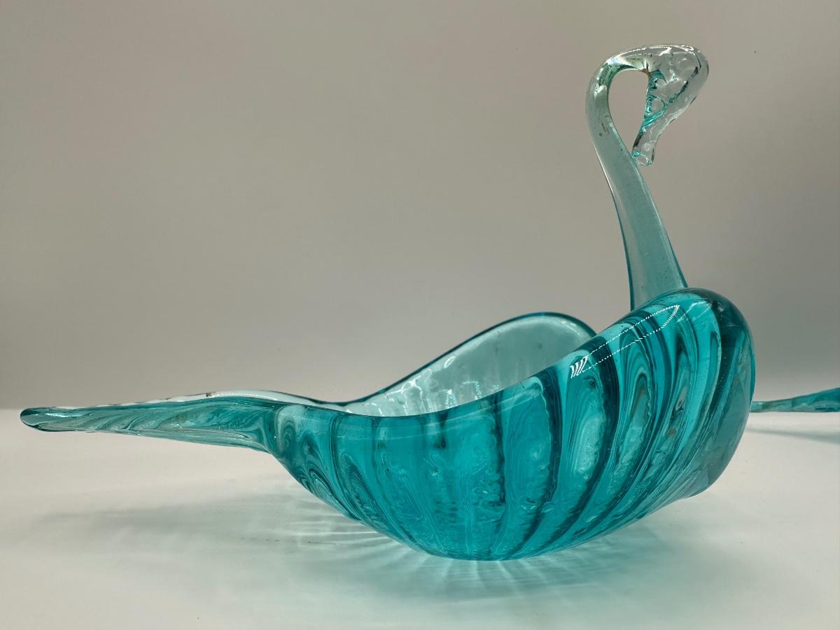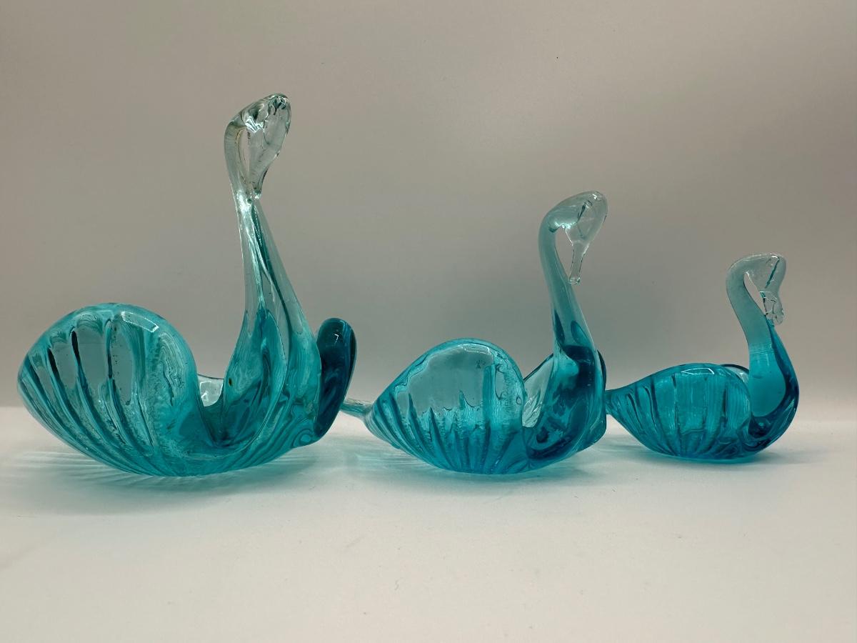 Vintage Aqua Blue Art Glass Nesting Swans Trinket Dishes Set of 3