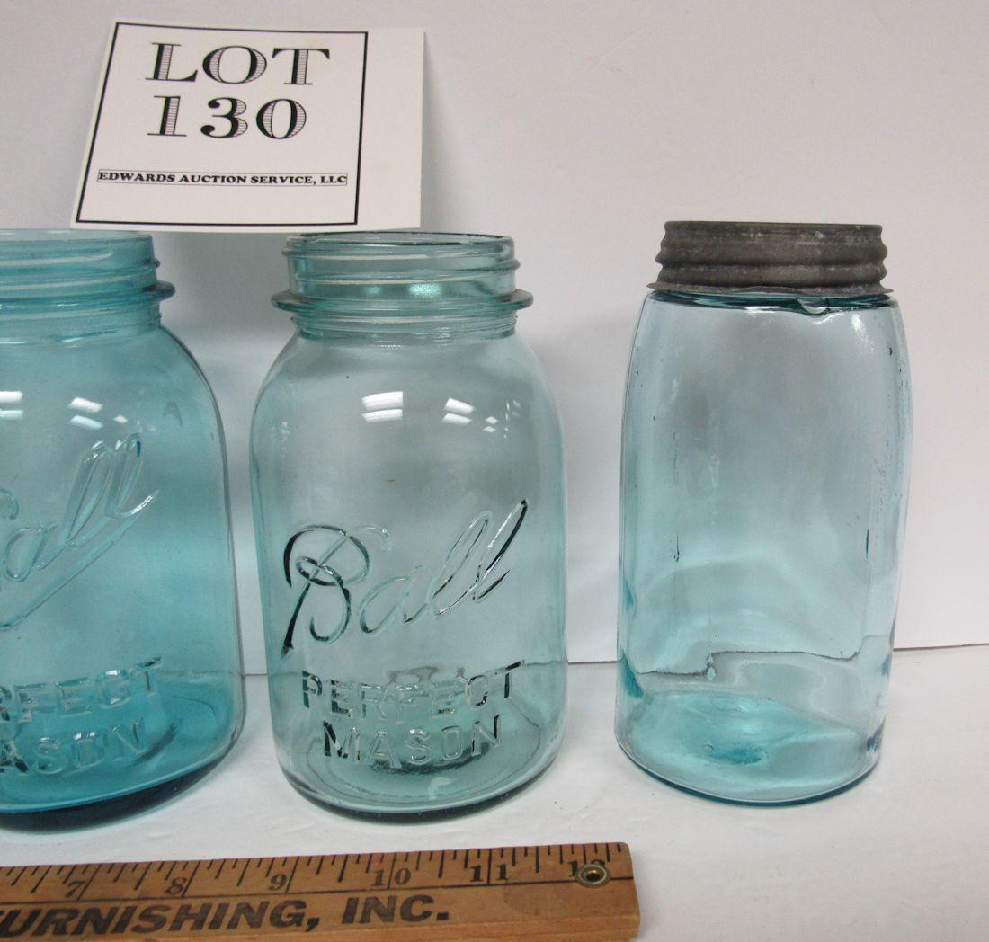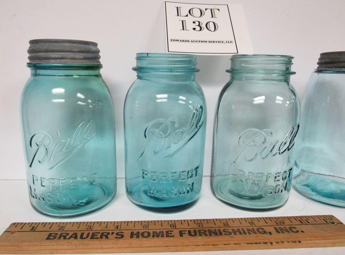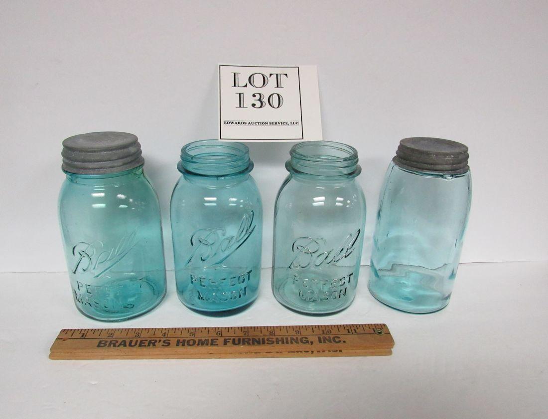 Vintage Aqua Canning Jars, 3 Perfect Masons All Different in Some Way, And 1 Unmarked