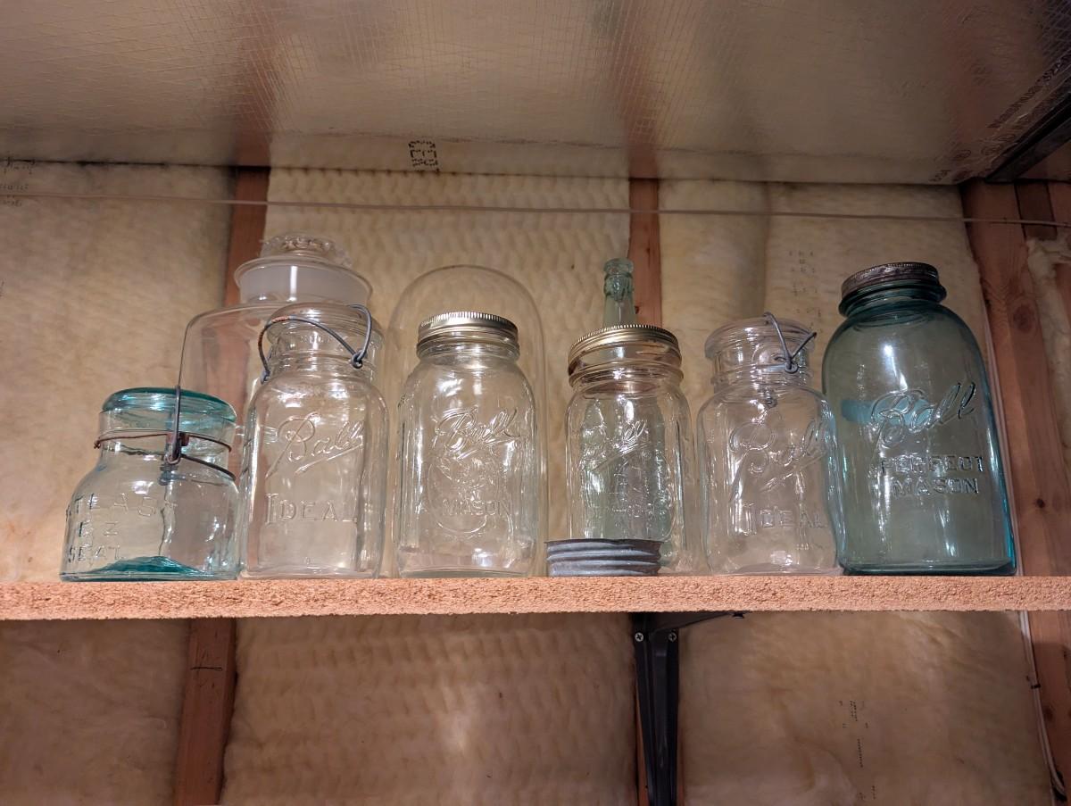 Vintage Aqua Glass Pluto Water America's Physic Bottle With Cap & Canning Jars Canister (B)