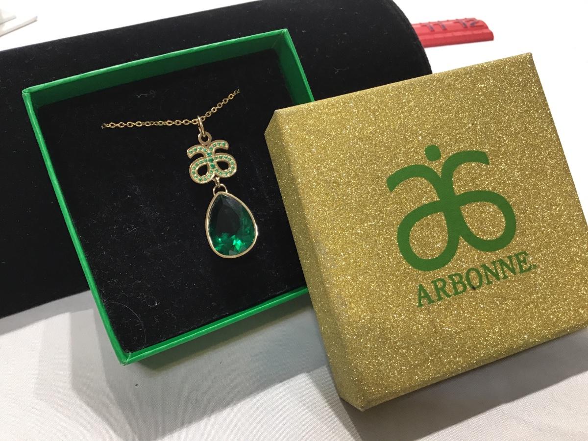 Vintage ARBONNE. Green stone Pendant and  Chain