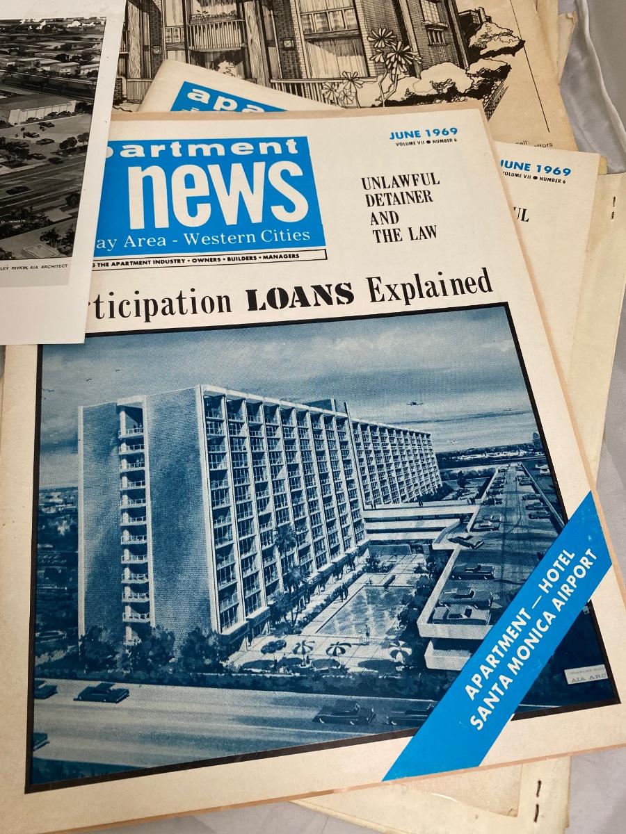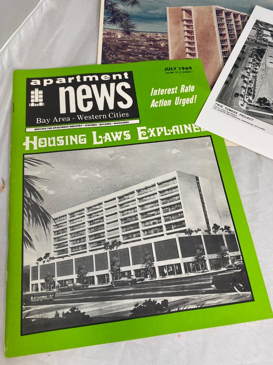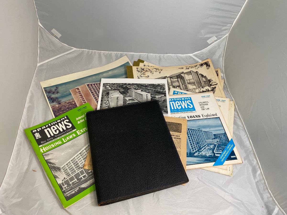 Vintage architecture lot. Includes a couple magazines, photos, building plan booklets, and a college thesis from a future architect. Great midcentury designs.