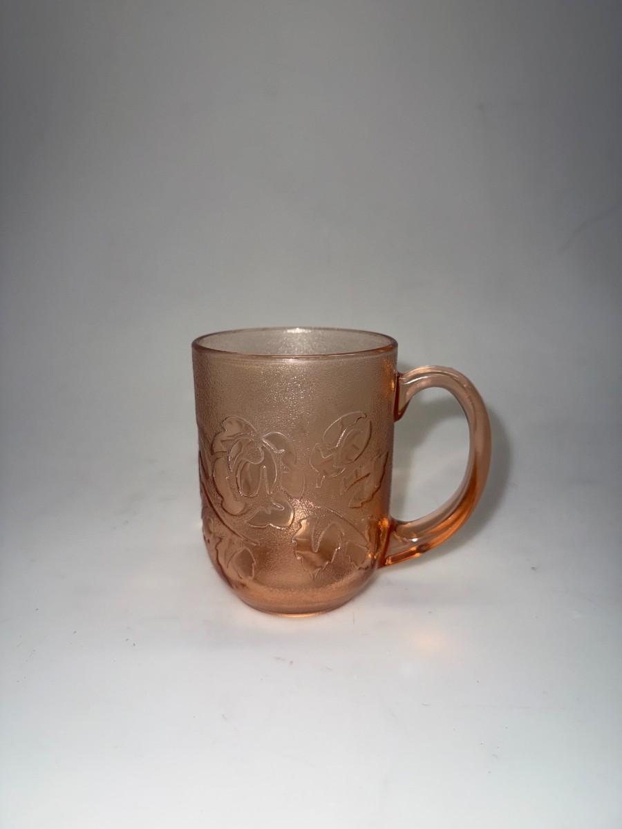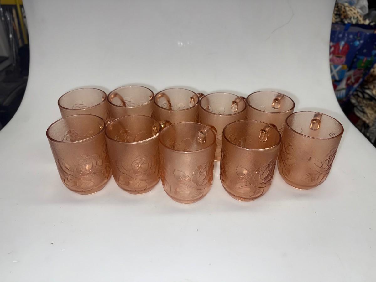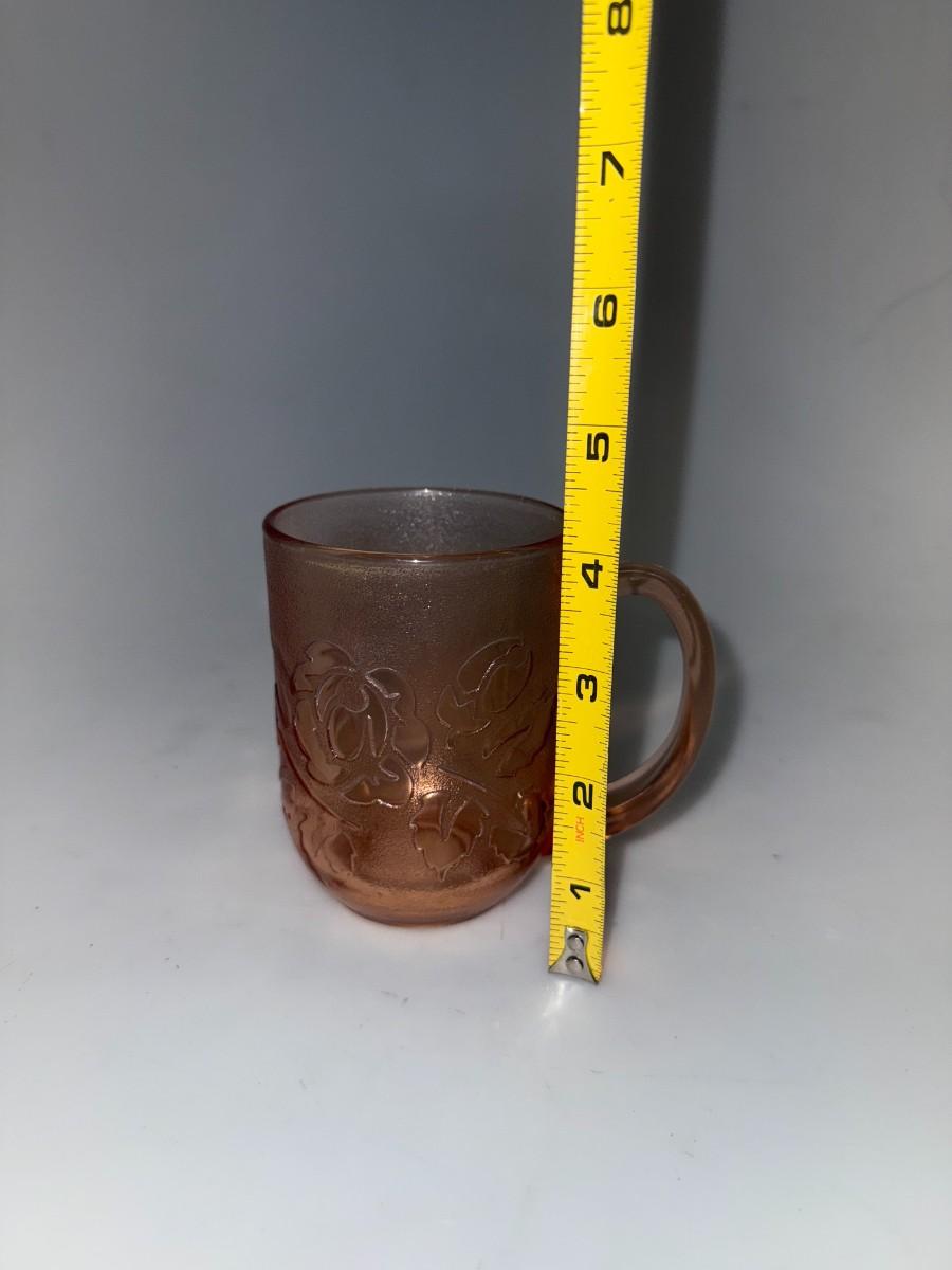 Vintage Arcoroc Pink Rose Set Of 4 Glass Mugs Embossed Frosted Floral France