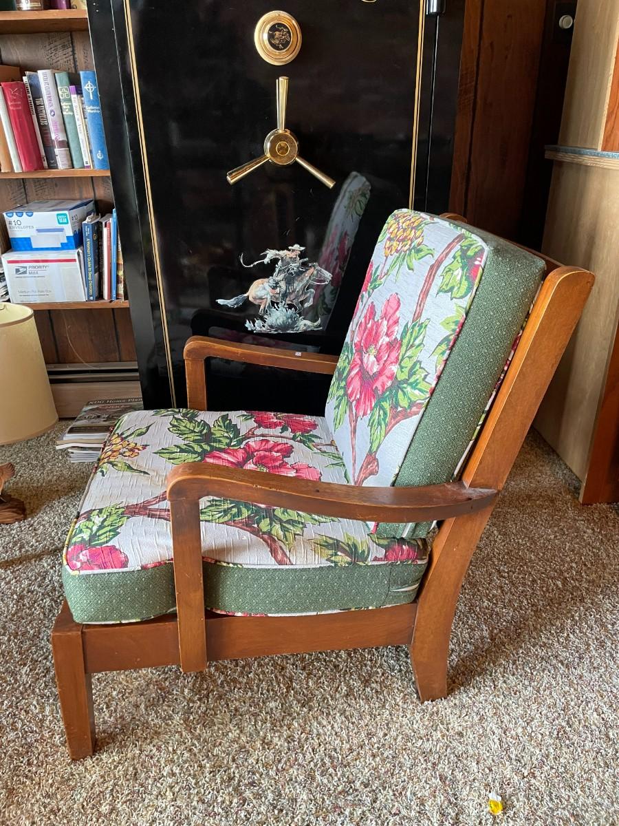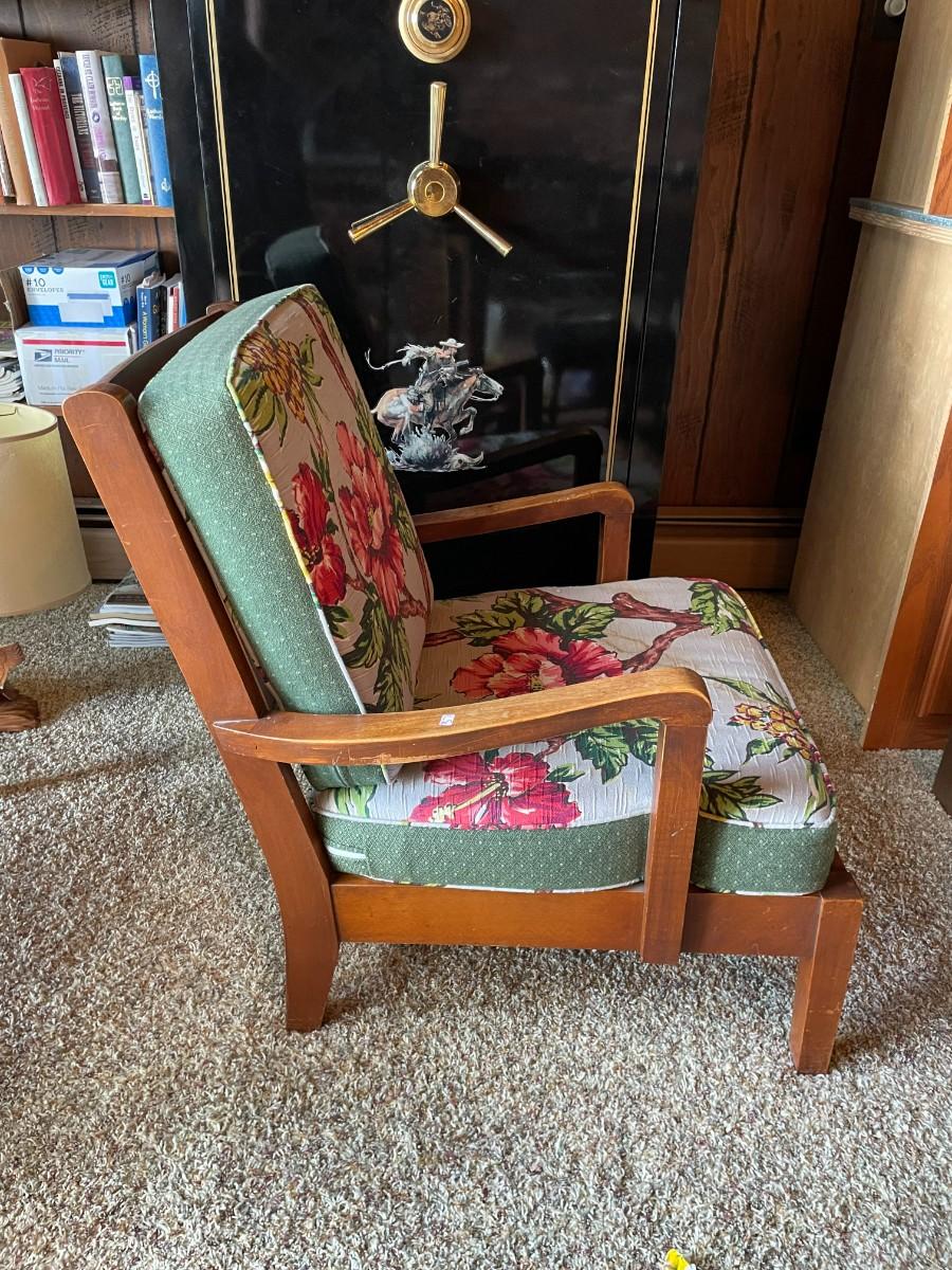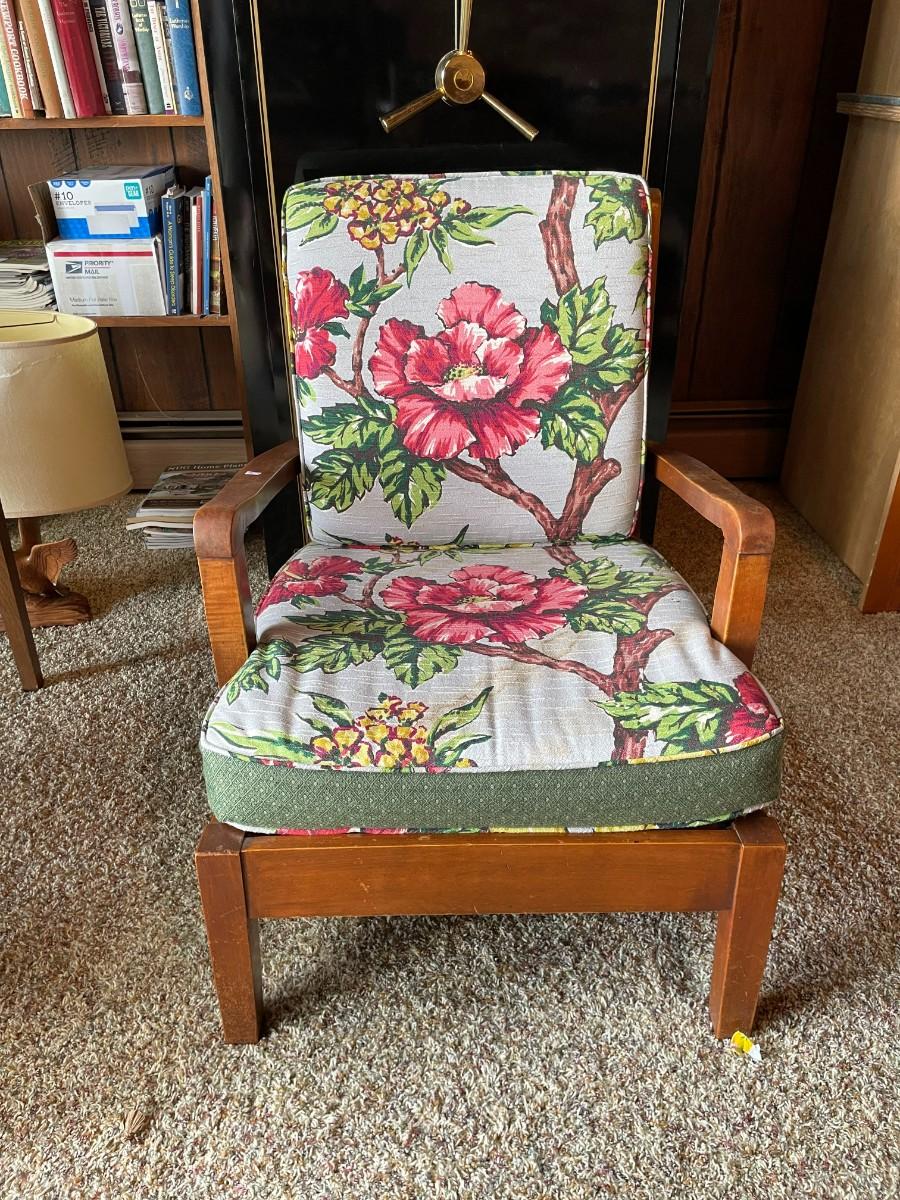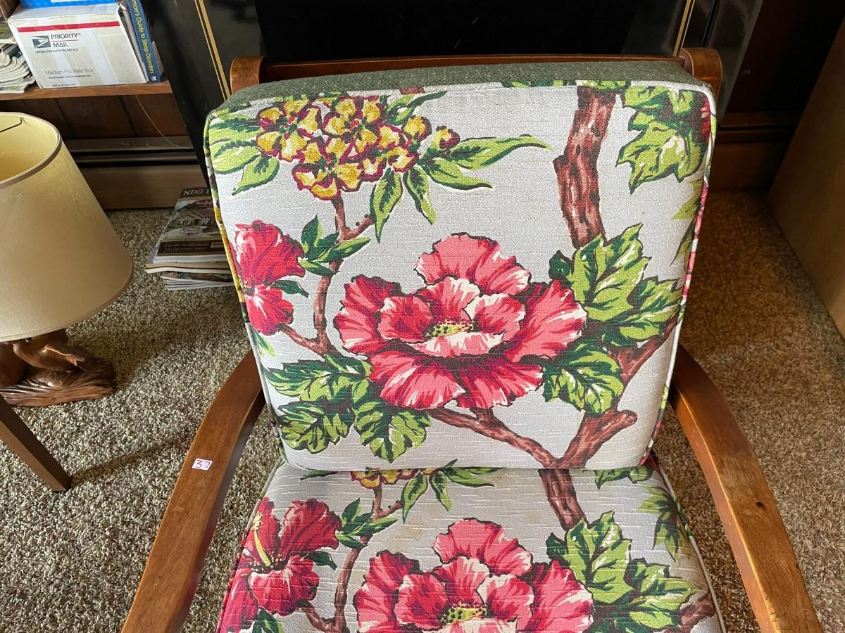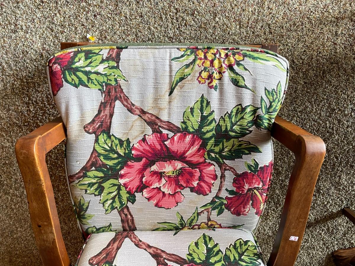The floral cushions are removable. 24"l x 26"w x 31"h.