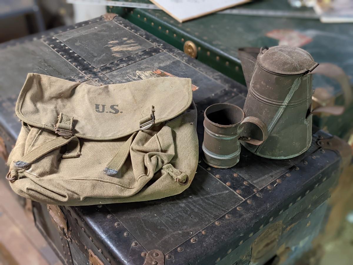 Vintage Army Backpack, Kettle and Cup