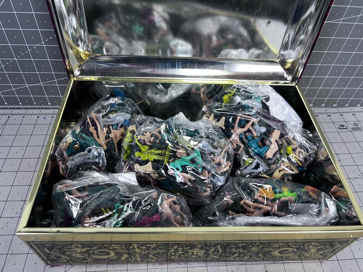 Vintage Army Men, Cowboys, Spacemen Etc. In a Tin Box COLLECTIBLE TOYS