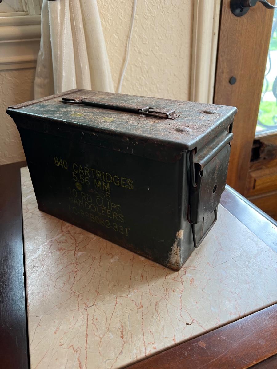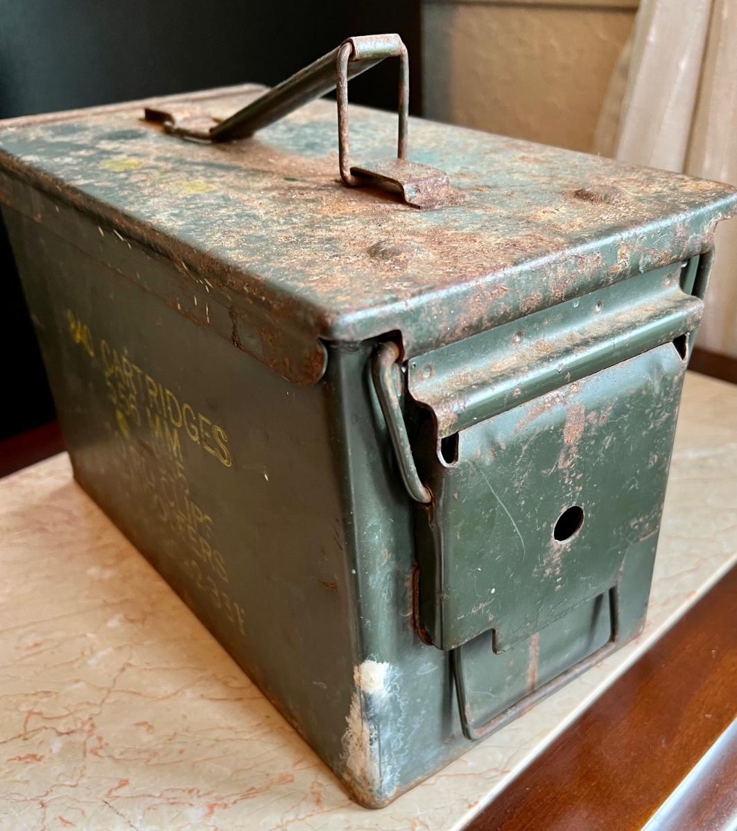 Vintage Army working ammo box. Approx 12 x 6 x 8. Has some rust