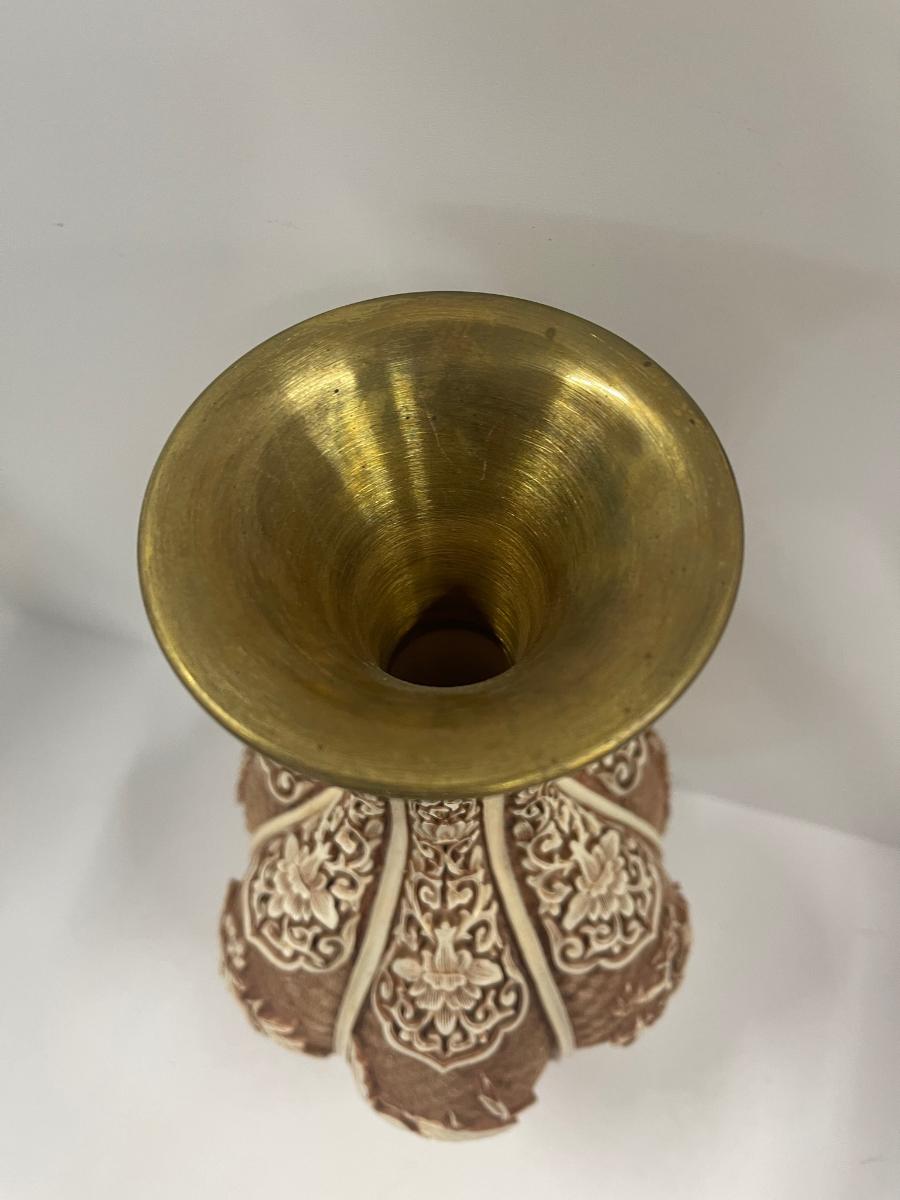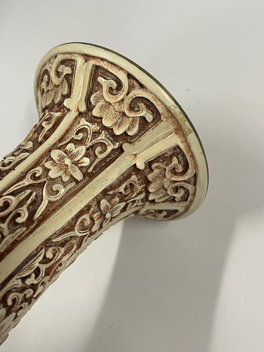 Vintage Ivory Dynasty vase by Arnart, circa 1982. Excellent condition. Resin over brass. Approx 12”.  # 1363