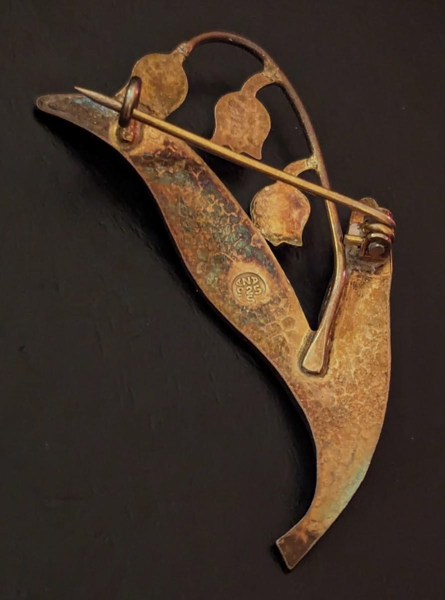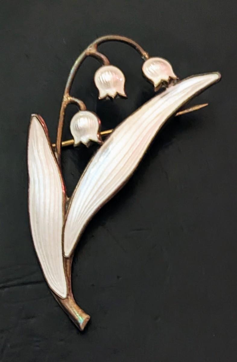 Vintage Arne Norlie Lily of the Valley white enamel on sterling silver brooch Guilloché Norway