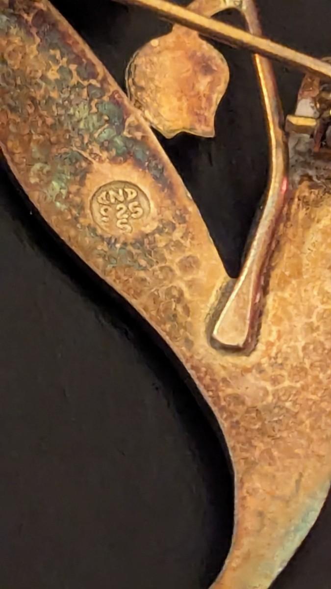 Vintage Arne Norlie Lily of the Valley white enamel on sterling silver brooch
