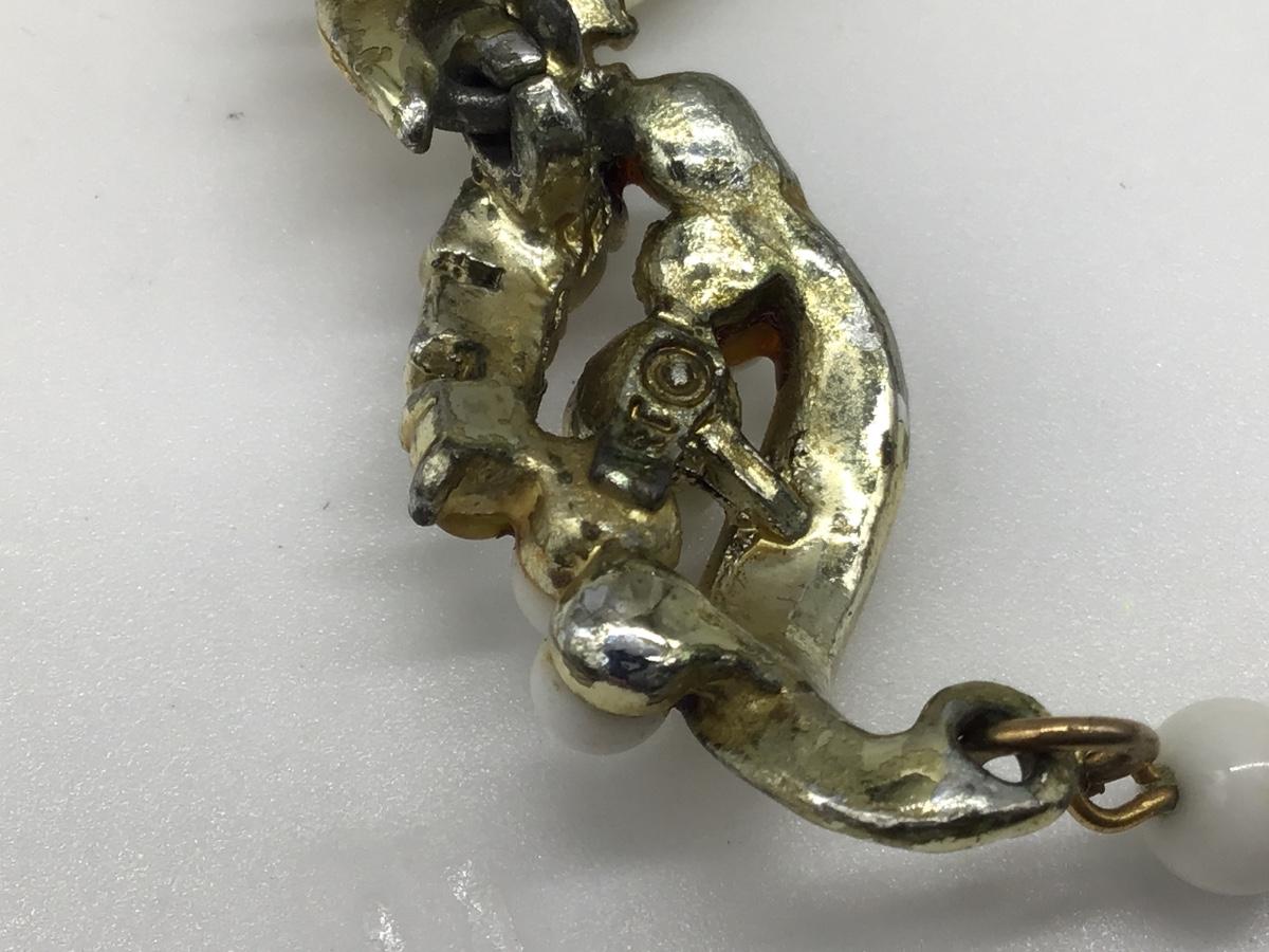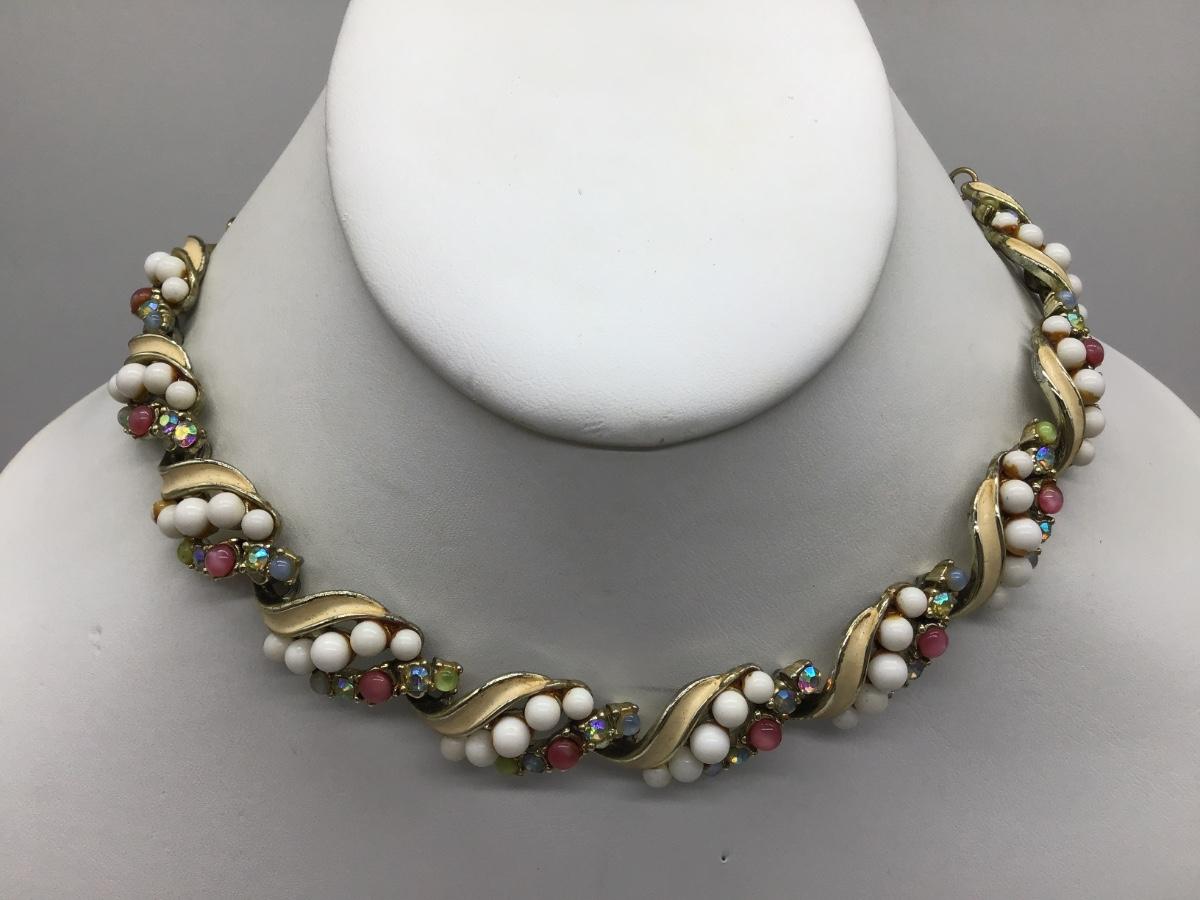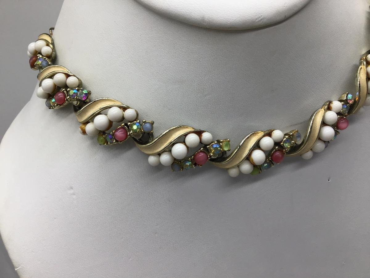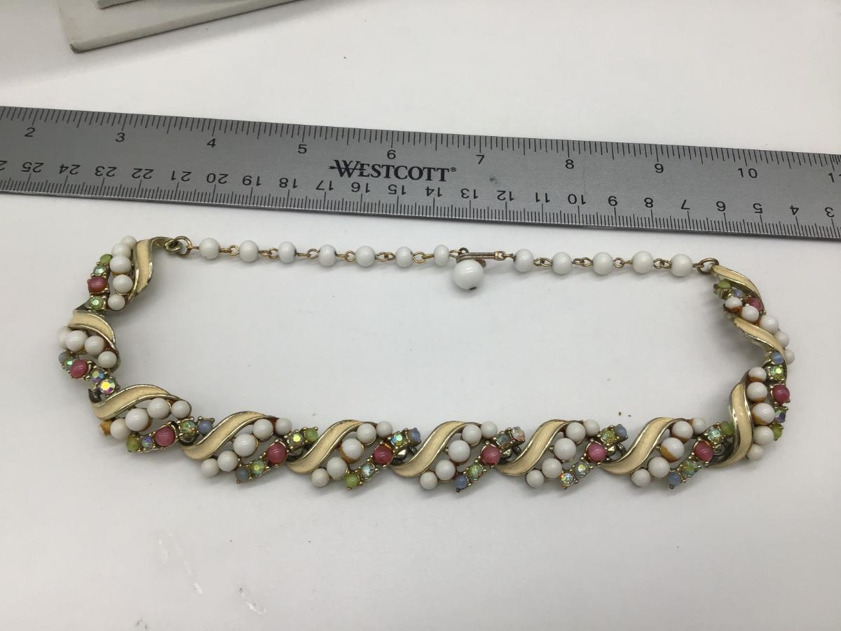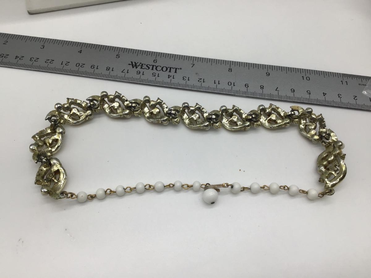 Vintage Art Co White Glass and Rhinestone Costume Necklace