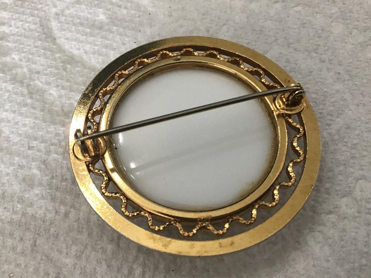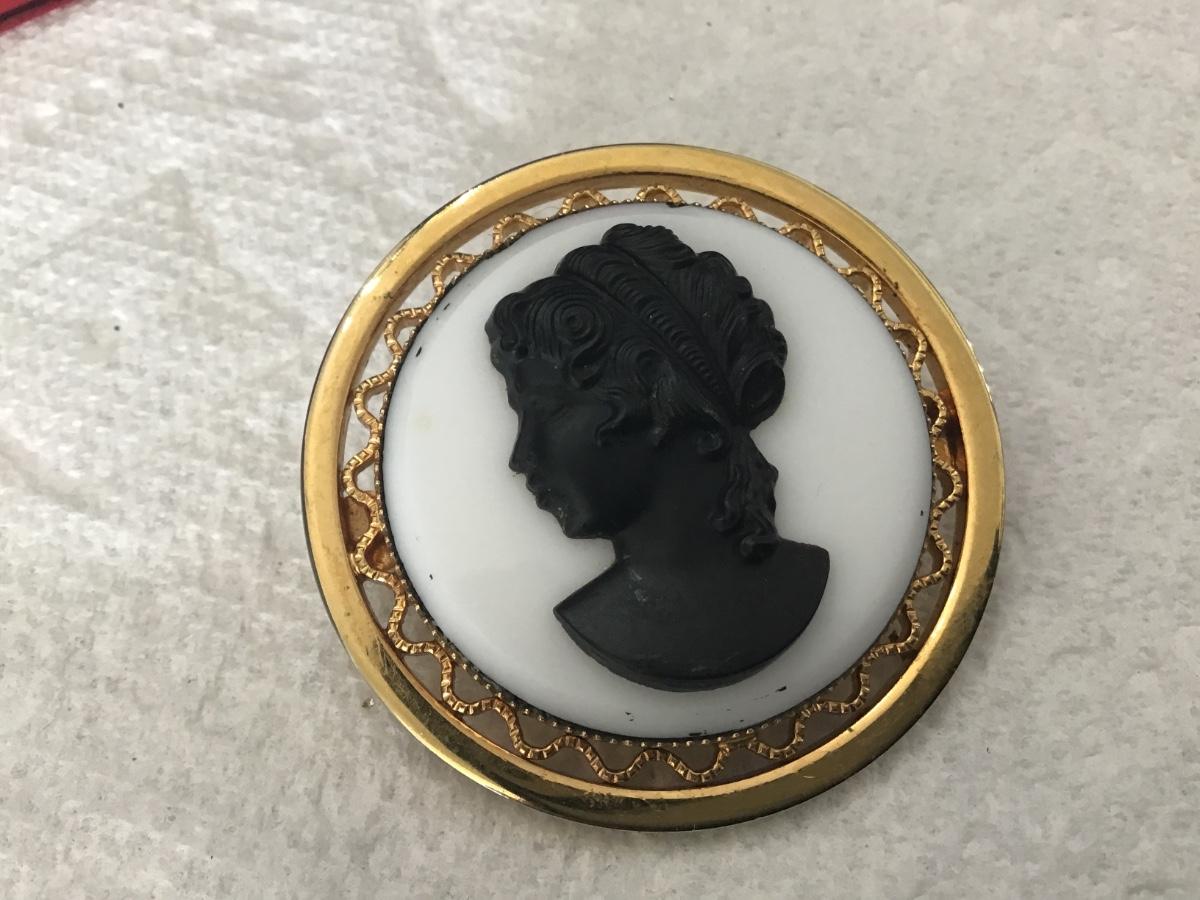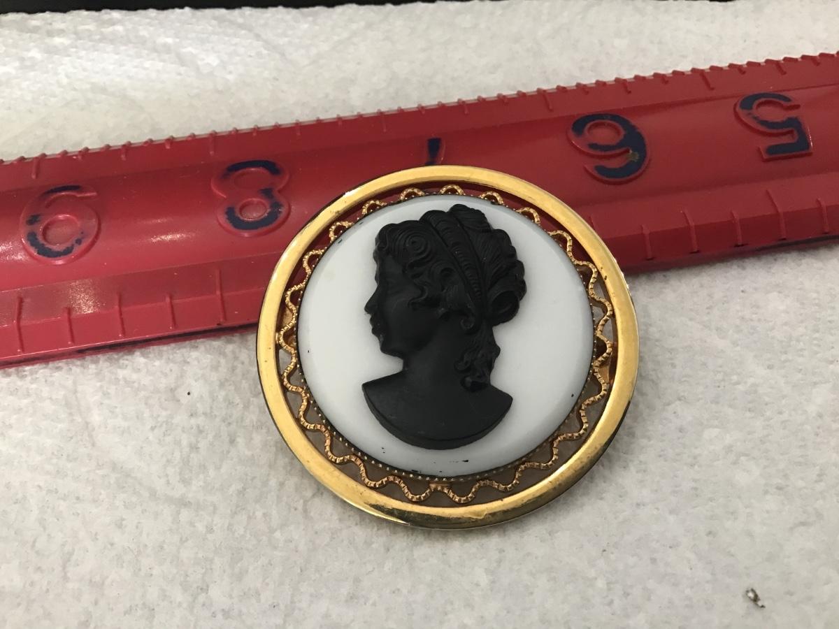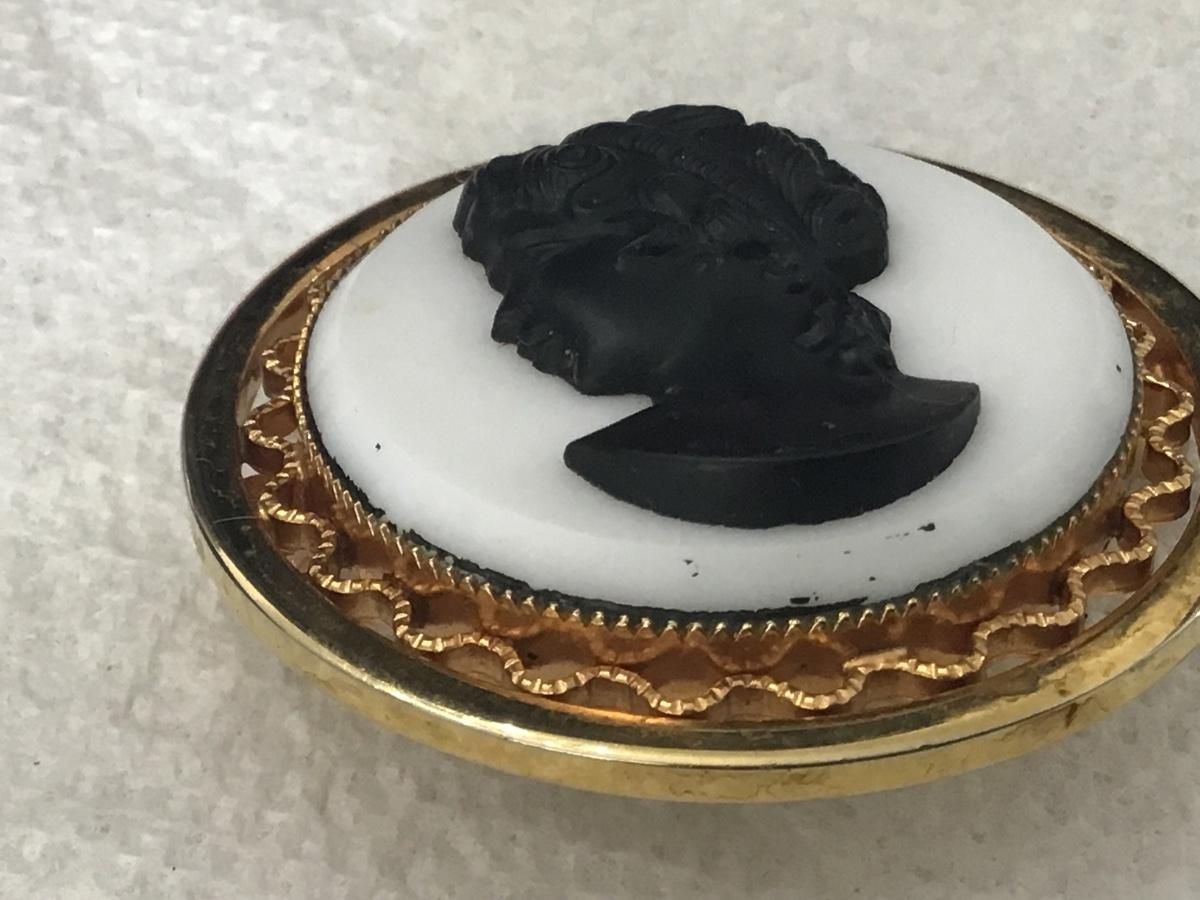 Vintage Art Deco Black & White Milk Glass Cameo Brooch Pin
