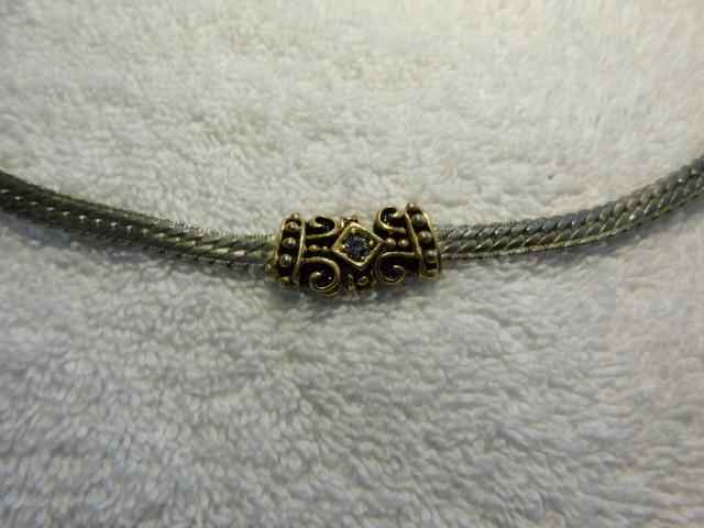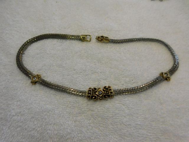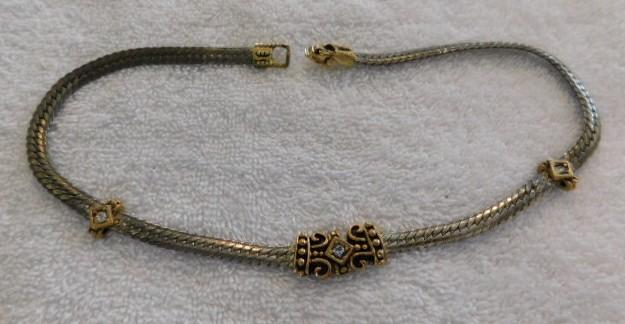 Vintage Art Deco Cast Metal Gold and Silver Plate Straight Necklace 17"