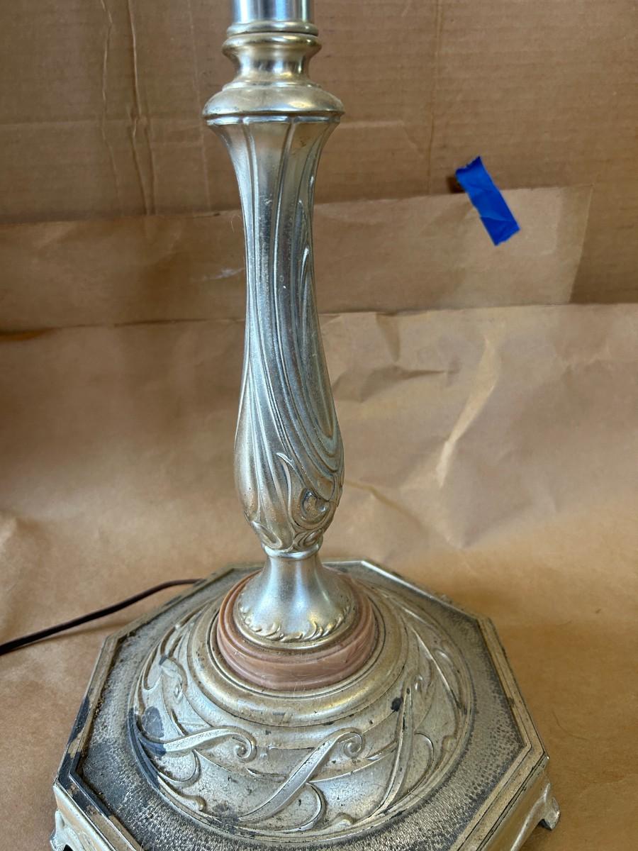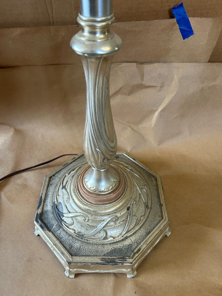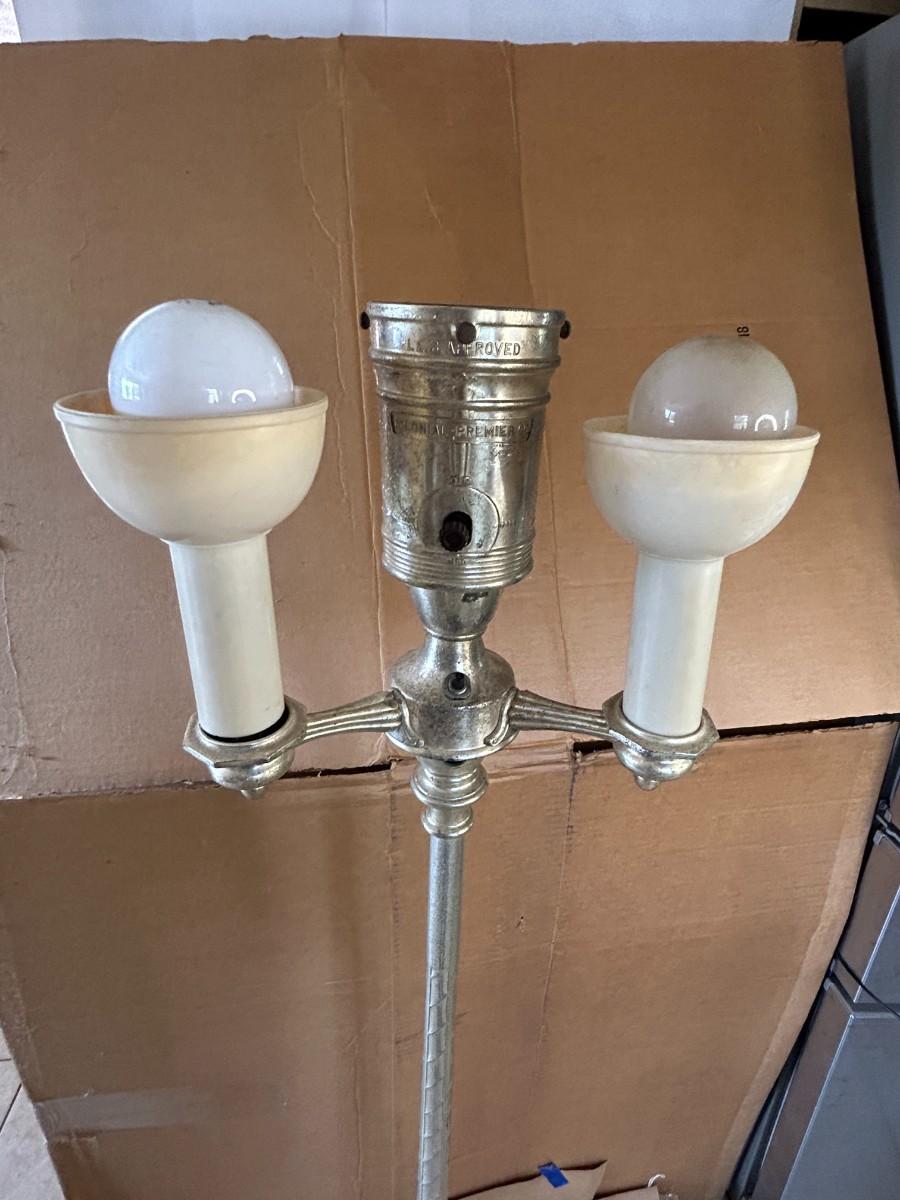 This piece came from a defunct movie prop house and is a restoration project. We tested the lamp, and two of the four bulbs work, although there is a “flicker,” and we recommend the lamp be rewired.
