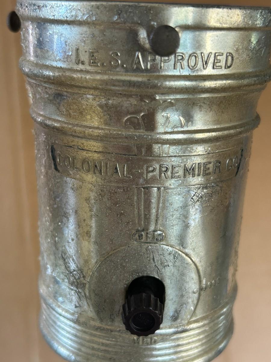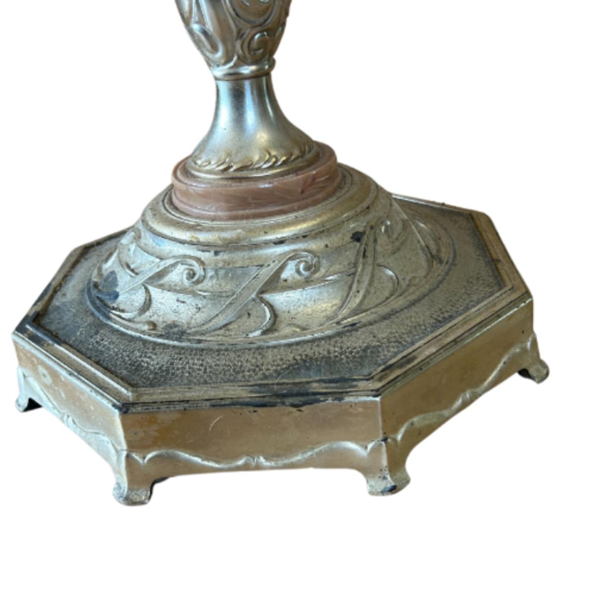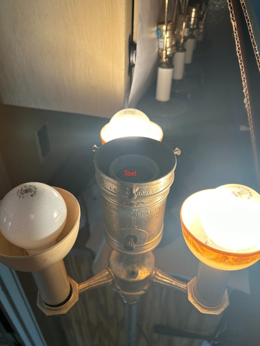 This piece came from a defunct movie prop house and is a restoration project. We tested the lamp, and two of the four bulbs work, although there is a “flicker,” and we recommend the lamp be rewired.