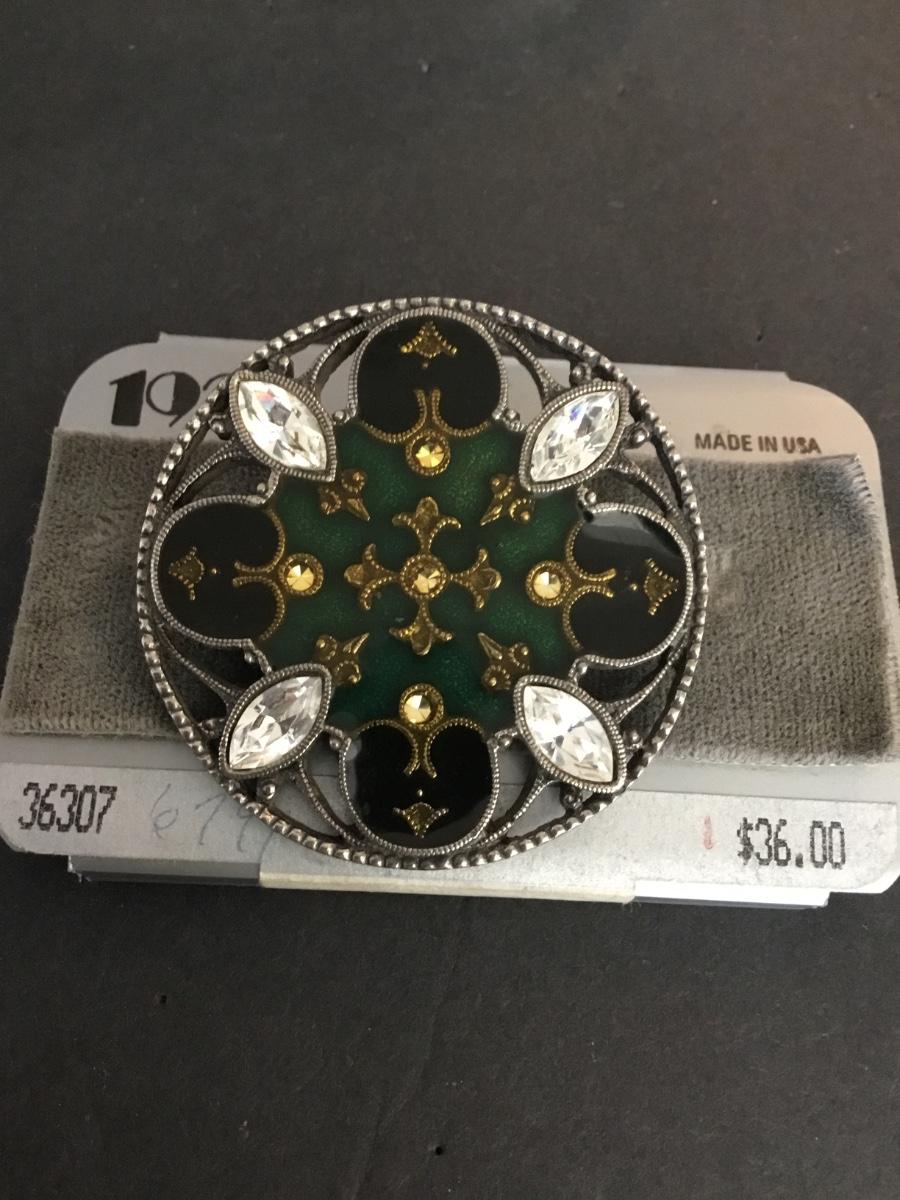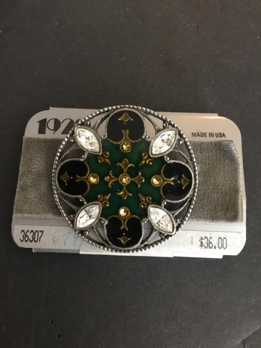 Vintage art, deco, design, enamel rhinestone, 1928 brooch