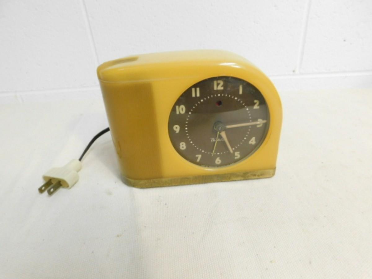 Vintage Art Deco Electric Westclox Alarm Clock appears to be in working condition. Not sure if light comes on.